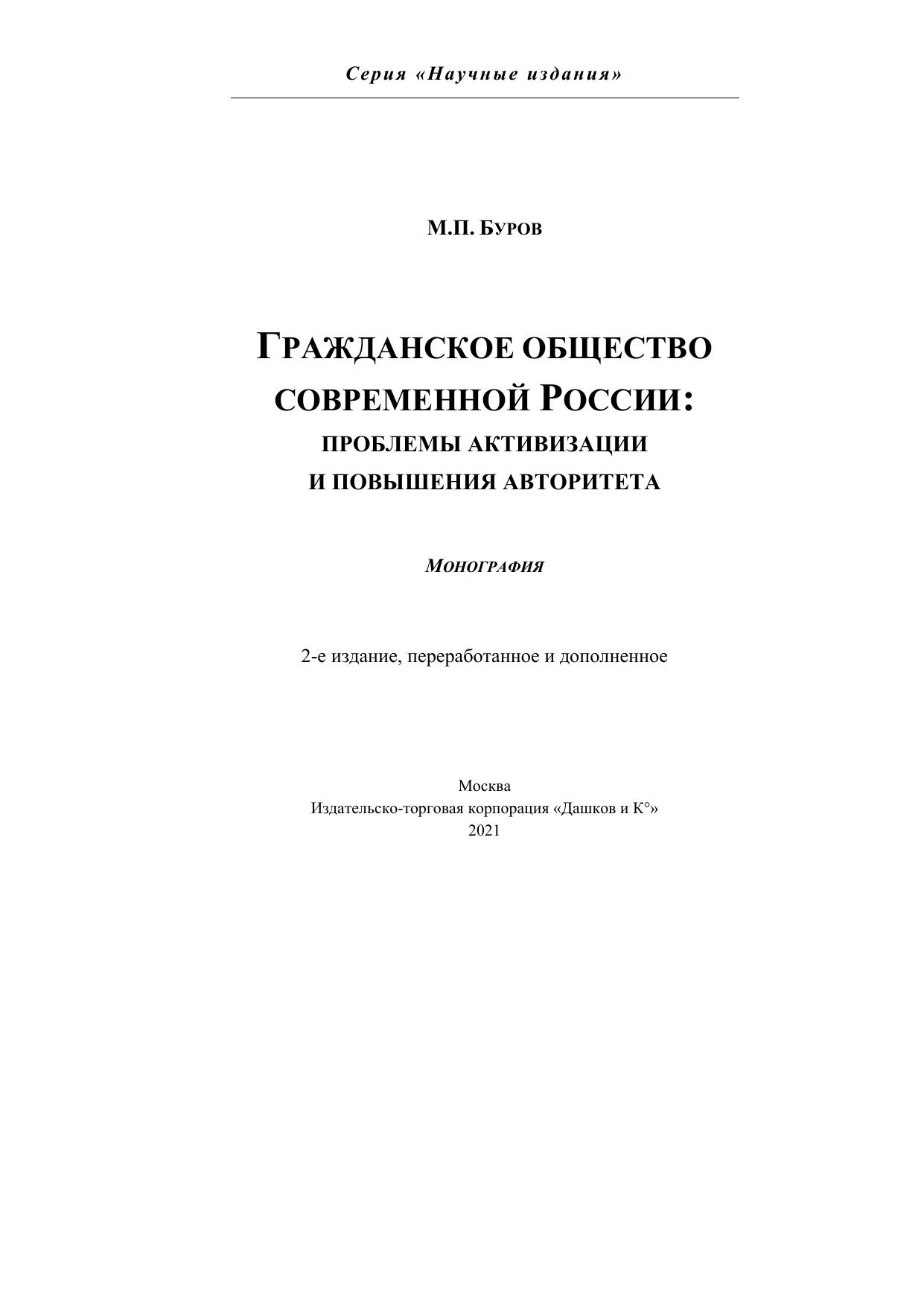 Гражданское общество современной России: проблемы активизации и повышения авторитета