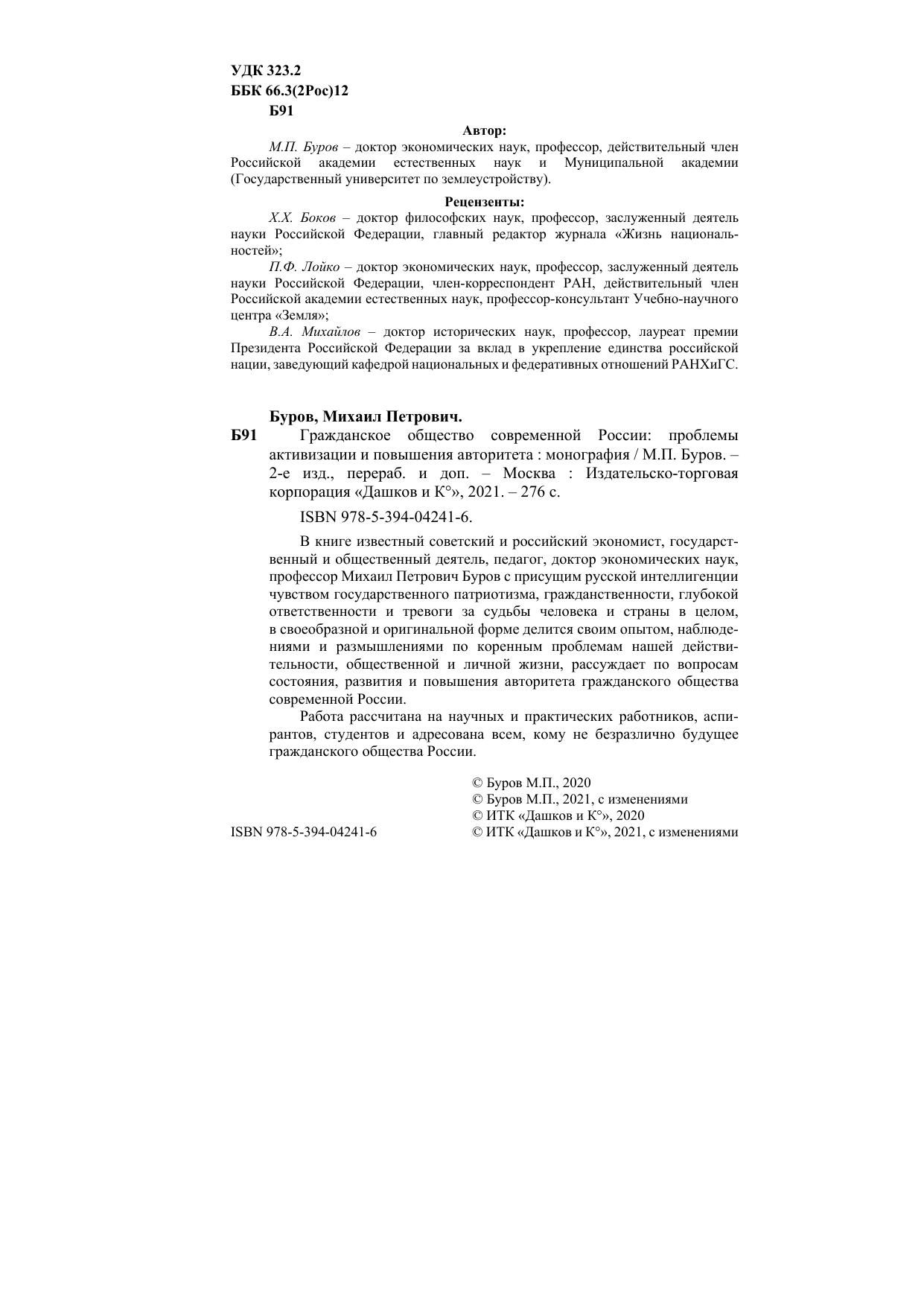 В книге известный советский и российский экономист, государственный и общественный деятель, педагог, доктор экономических наук, профессор Михаил Петрович Буров с присущим русской интеллигенции чувством государственного патриотизма, гражданственности, глубокой ответственности и тревоги за судьбы человека и страны в целом, в своеобразной и оригинальной форме делится своим опытом, наблюдениями и размышлениями по коренным проблемам нашей действительности, общественной и личной жизни, рассуждает по вопросам состояния, развития и повышения авторитета гражданского общества современной России.