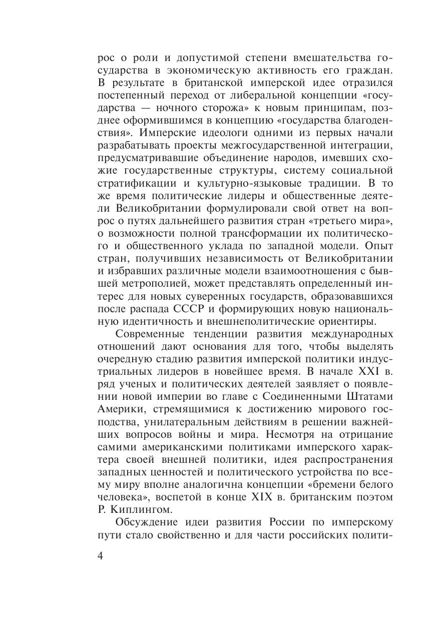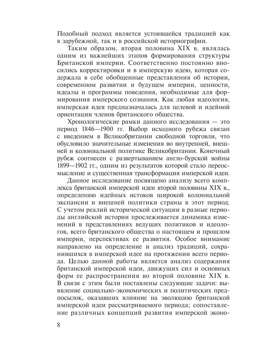 В исследовании дается характеристика процесса развития имперской идеи в Великобритании во второй половине XIX в., исходя из выделения ее основных аспектов — экономического, политического, культурологического. Определяется влияние изменений во внутриполитическом развитии Великобритании и положении страны в системе международных отношений на формирование образа империи. Предназначена для историков, политологов, специалистов по международным отношениям, всех, кто интересуется историей империй.