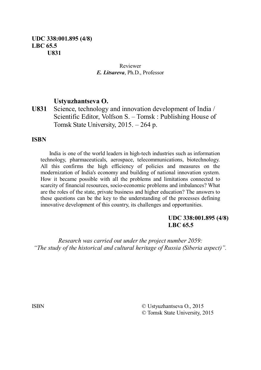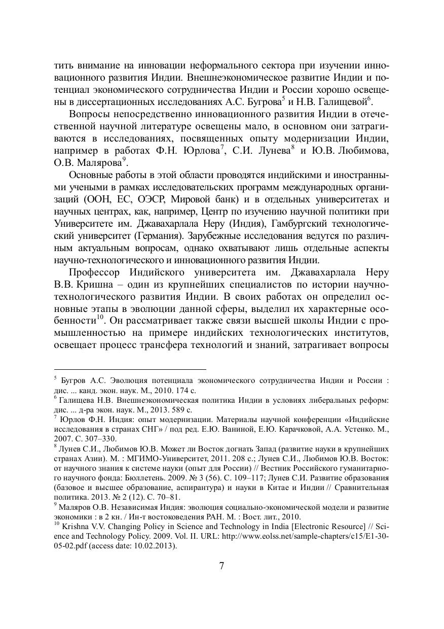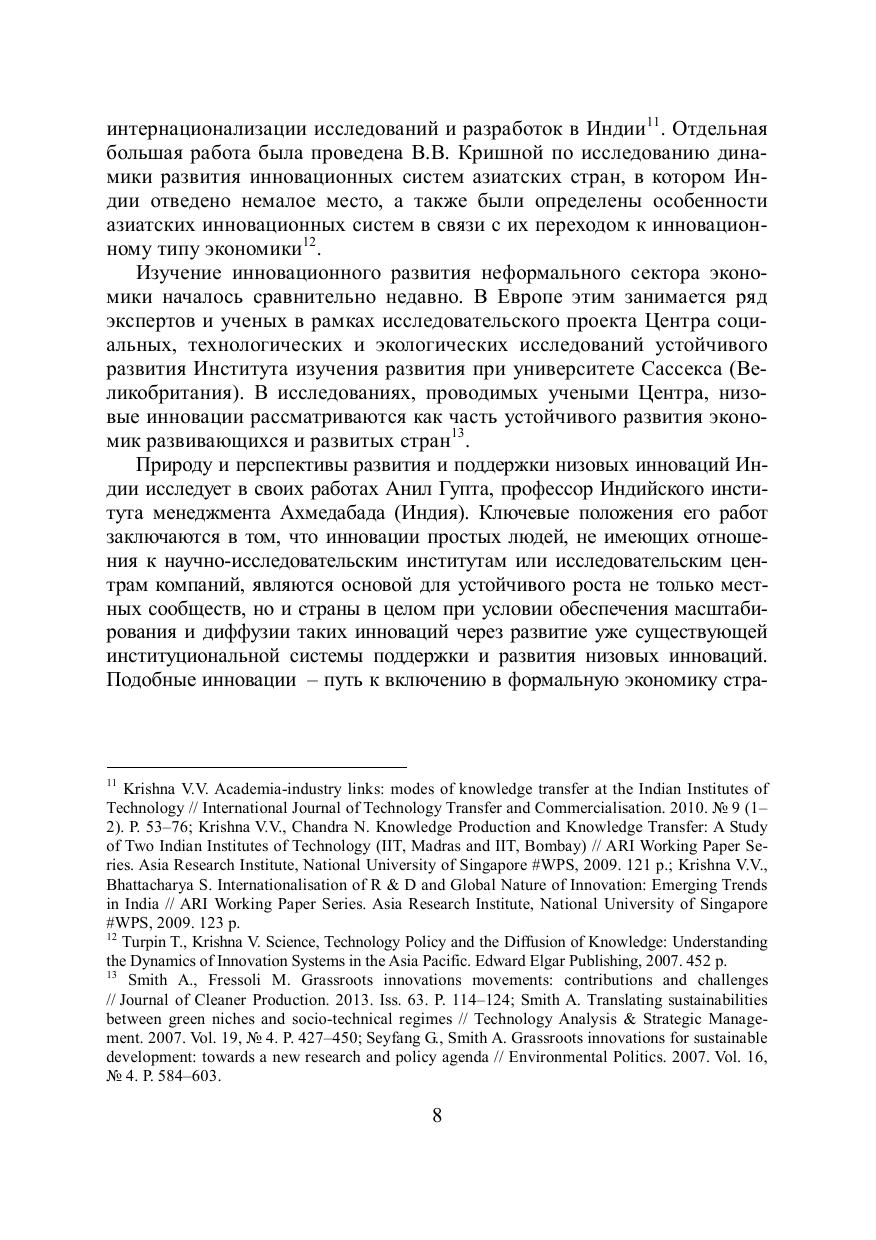 На сегодняшний день Индия в числе мировых лидеров по таким высокотехнологичным отраслям, как информационные технологии, фармацевтическая промышленность, аэрокосмос, телекоммуникационная сферы, биотехнологии. Это подтверждает высокую эффективность мер и политики Индии по модернизации экономики страны и построению национальной инновационной системы. Каким образом в условиях ограниченности финансовых ресурсов, наличии социально-экономических проблем и дисбалансов Индии удается достигать таких результатов, какую роль в этом играют государство, частный бизнес и высшая школа – ответы на эти вопросы могут стать ключом к пониманию процессов, происходящих и определяющих инновационное развитие этой страны, ее приоритеты и специфику. Данная работа ориентирована на научные и образовательные учреждения и деловые круги, вовлеченные в научно-технологическое и образовательное сотрудничество с Индией.