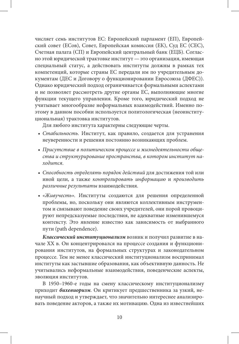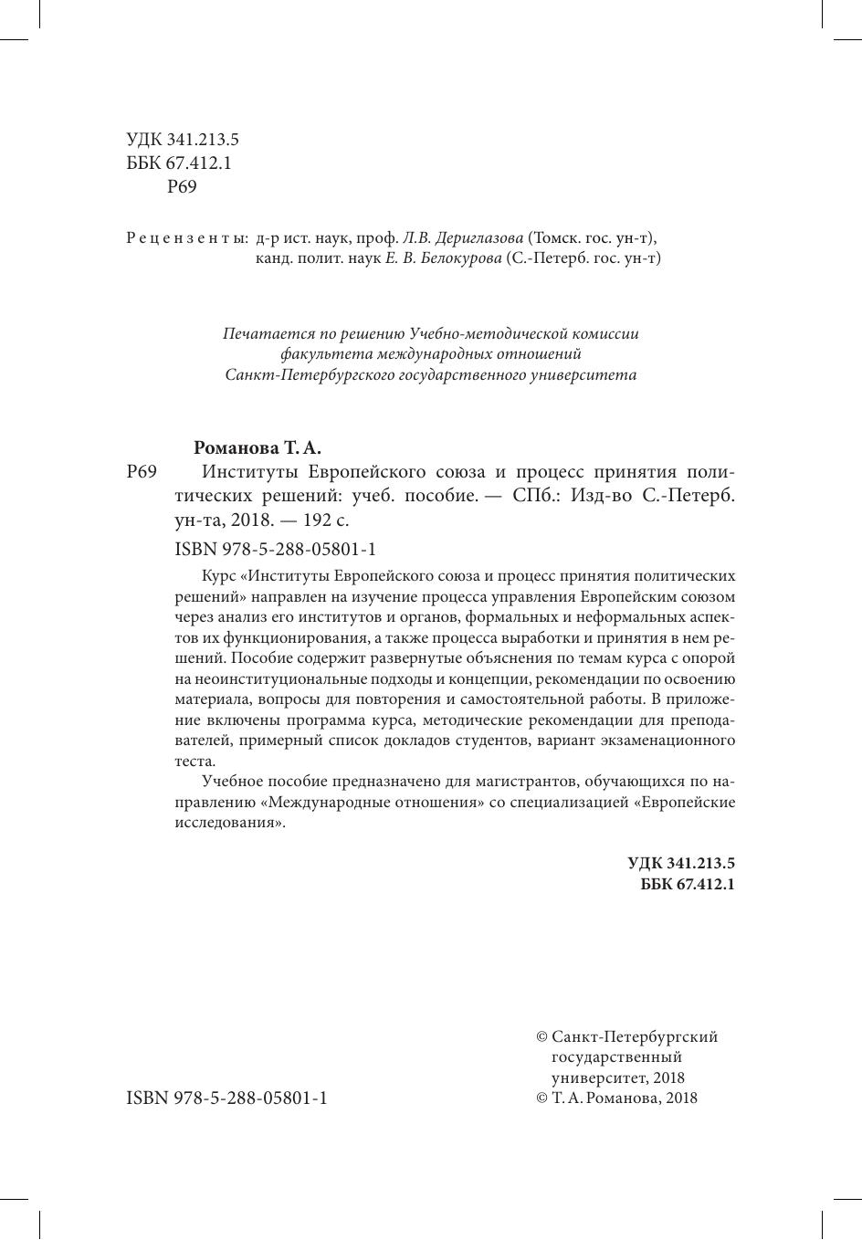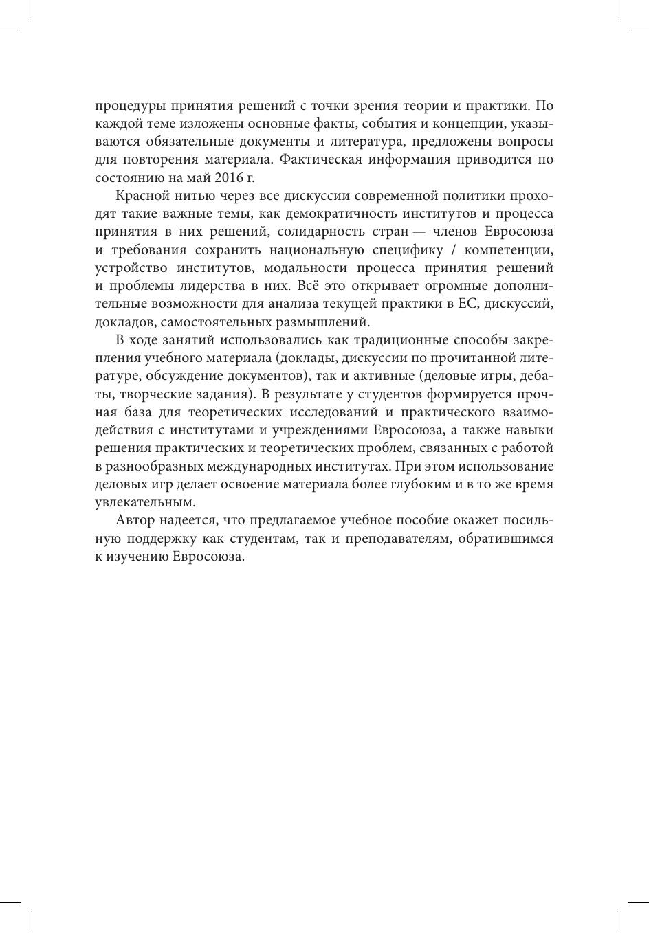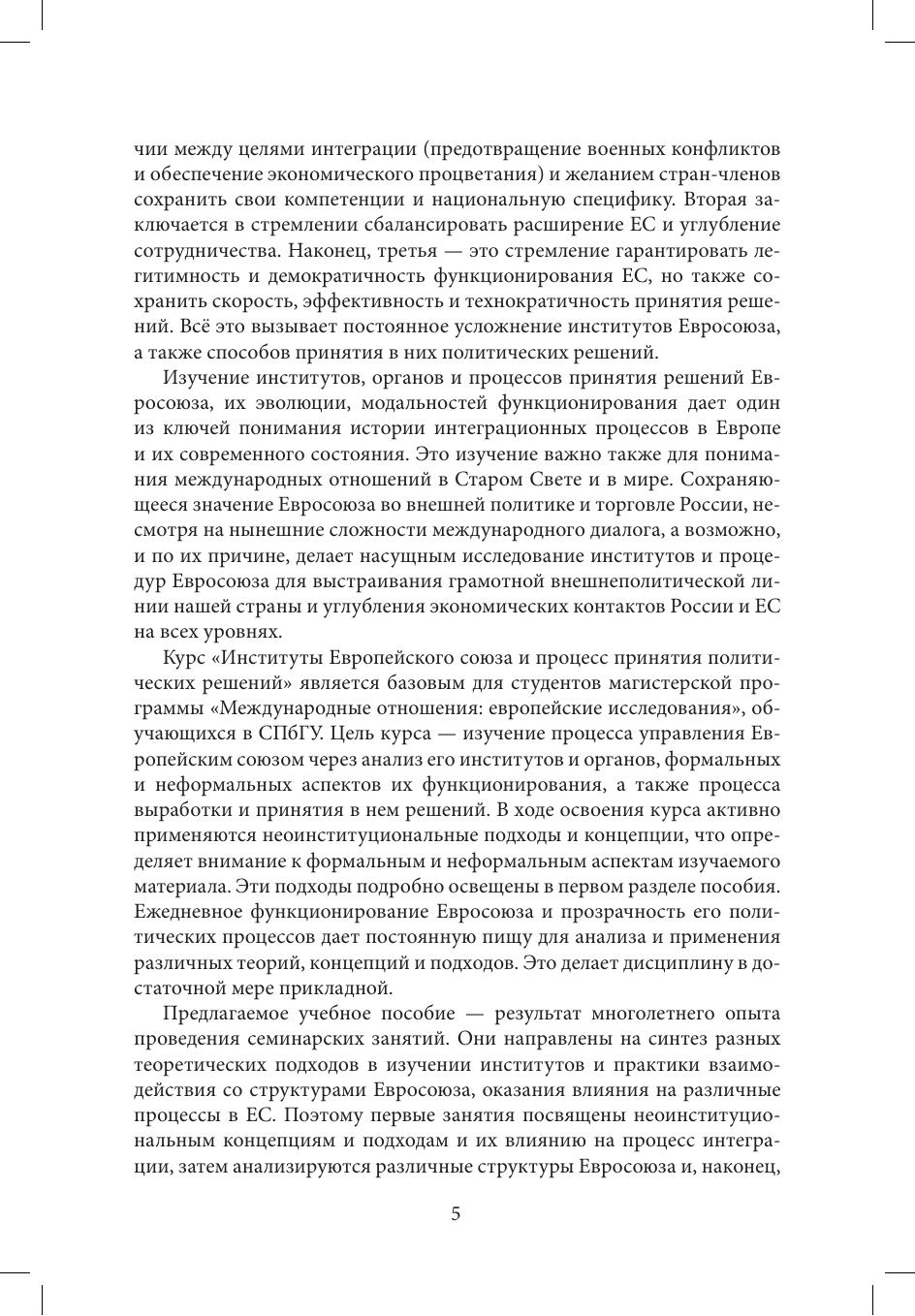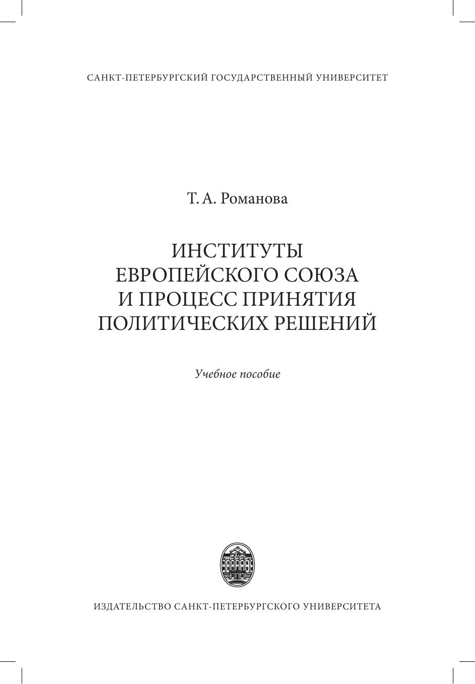Курс «Институты Европейского союза и процесс принятия политических решений» направлен на изучение процесса управления Европейским союзом через анализ его институтов и органов, формальных и неформальных аспектов их функционирования, а также процесса выработки и принятия в нем решений. Пособие содержит развернутые объяснения по темам курса с опорой на неоинституциональные подходы и концепции, рекомендации по освоению материала, вопросы для повторения и самостоятельной работы. В приложение включены программа курса, методические рекомендации для преподавателей, примерный список докладов студентов, вариант экзаменационного теста.