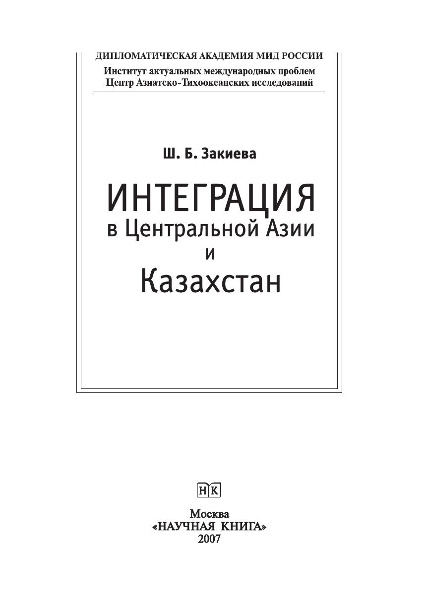 Интеграция в Центральной Азии и Казахстан. Монография