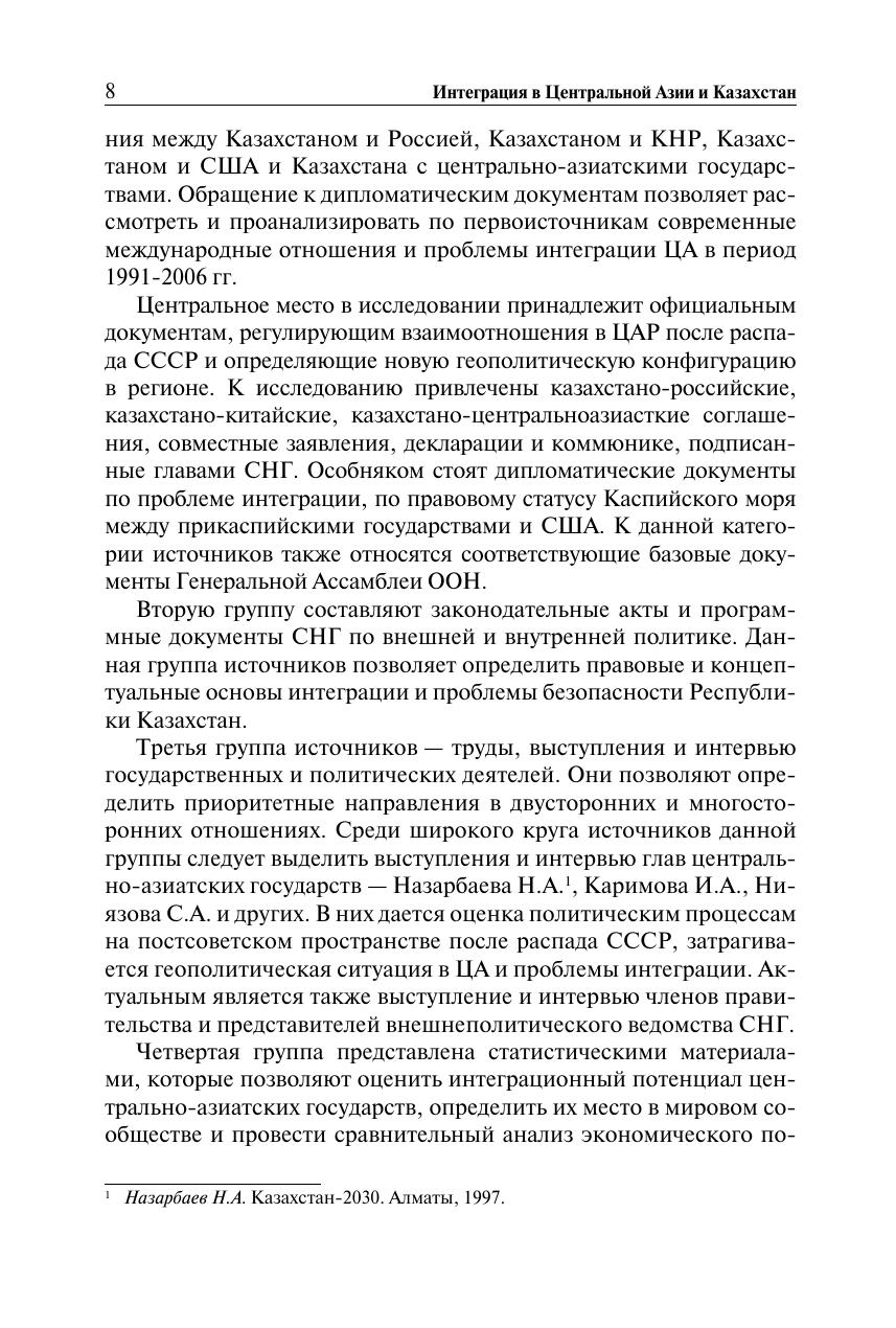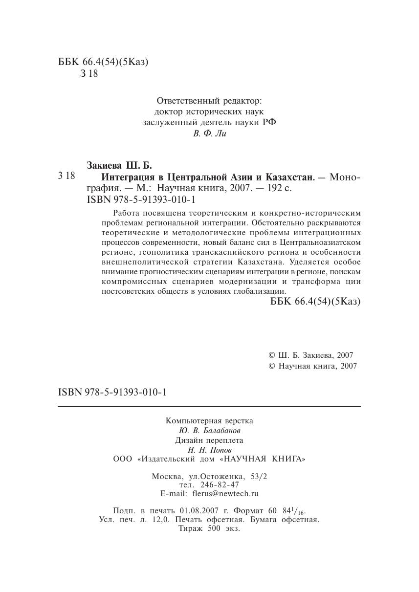 Работа посвящена теоретическим и конкретно-историческим проблемам региональной интеграции. Обстоятельно раскрываются теоретические и методологические проблемы интеграционных процессов современности, новый баланс сил в Центральноазиатском регионе, геополитика транскаспийского региона и особенности внешнеполитической стратегии Казахстана. Уделяется особое внимание прогностическим сценариям интеграции в регионе, поискам компромиссных сценариев модернизации и трансформа ции постсоветских обществ в условиях глобализации.