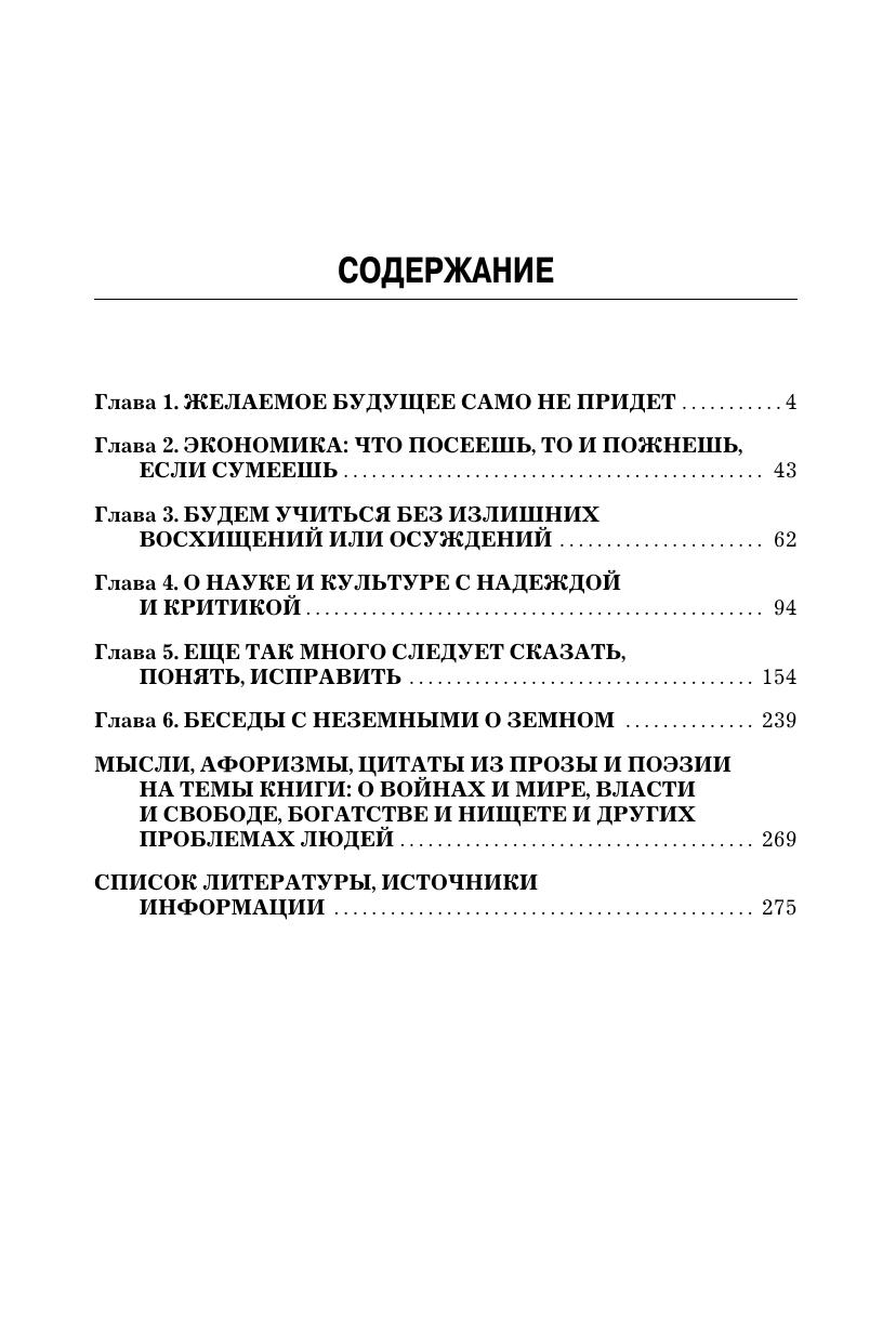 Даются конкретные рекомендвции и предложения по преобразованию мира, по созданию политических, культурных, социальных организаций, способных помочь в решении самых насущных проблем. По глубокому убеждению автора, человечество должно стремиться не к дальнейшему развитию дискредитировавшего себя современного капитализма, а к интеграционному обществу социальной направленности. В одной из глав представлены несколько стран с целью отметить их наиболее примечательные, характерные черты и достижения.