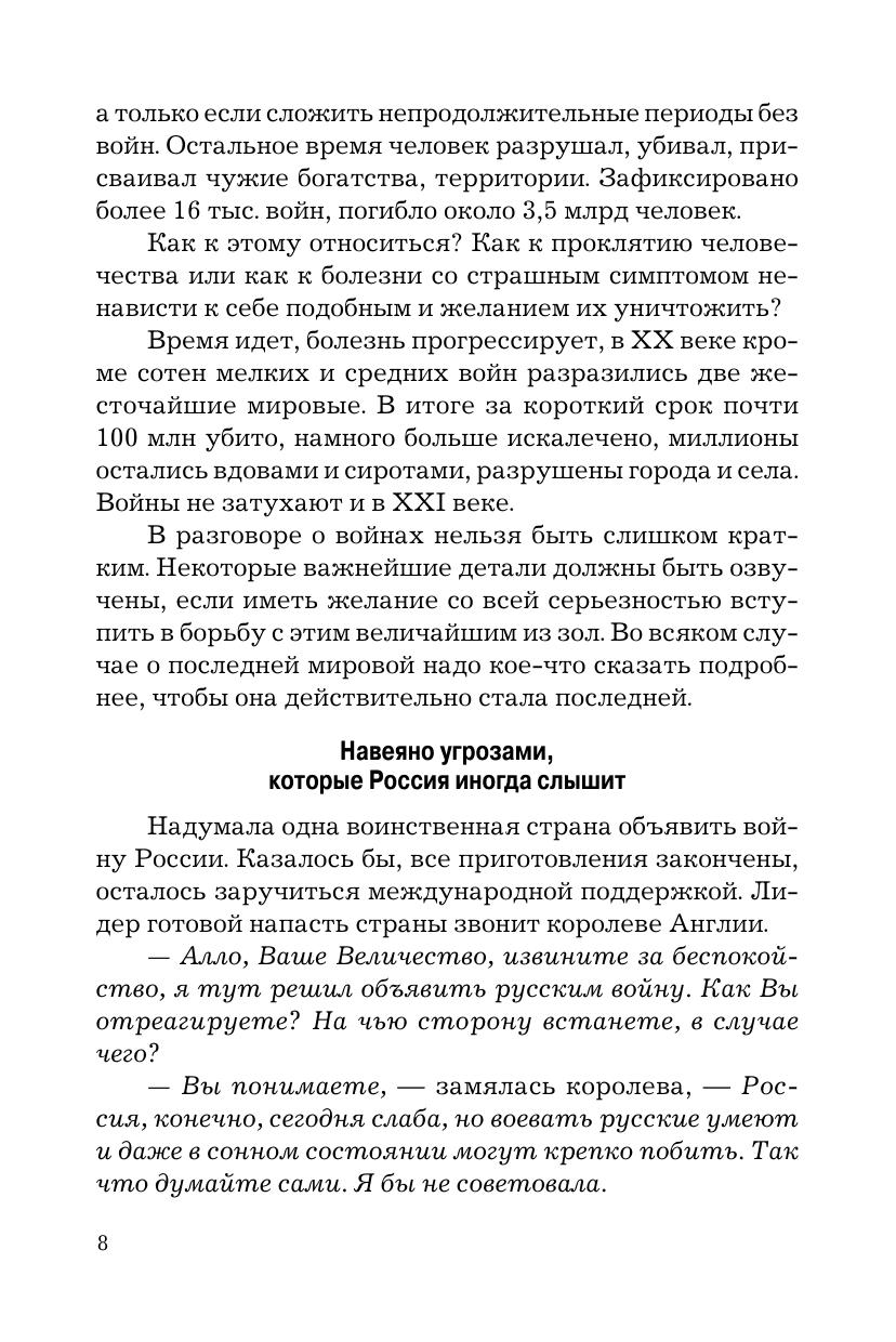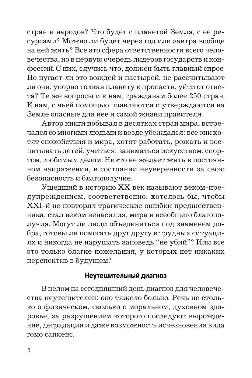 Одна из главных тревог человечества - угроза мировой войны с возможным катастрофическим для всех стран исходом. Что может ее предотвратить? Прежде всего мирные средства - умная дипломатия, открытые доверительные отношения между государствами. Спасительную роль призваны сыграть культура во всем ее многообразии и наука, способные делать жизнь лучше, легче, благополучнее для всех, а не только для избранных.