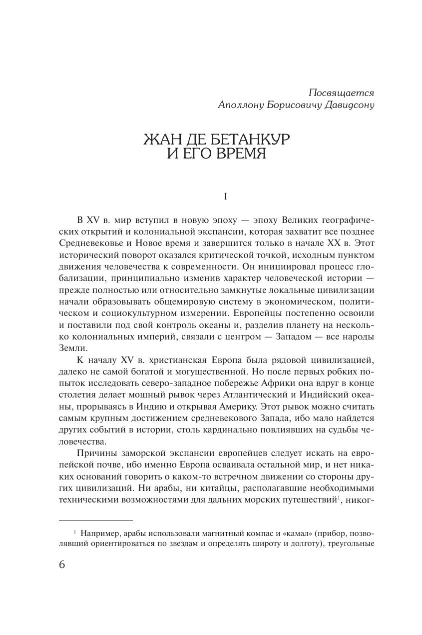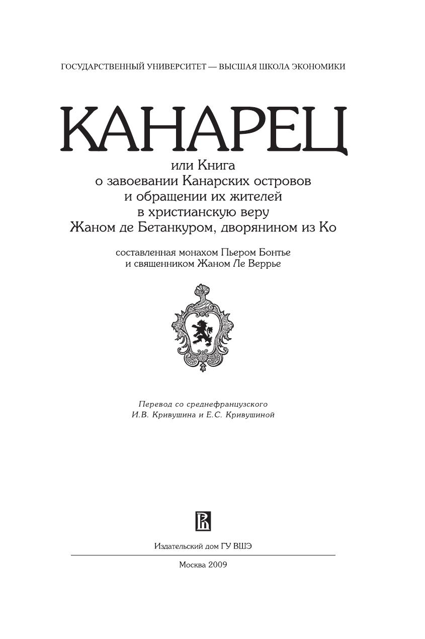 Это первое научное отечественное издание и первый перевод на русский язык сочинения «Канарец, или Книга о завоевании Канарских островов и обращении их жителей в христианскую веру», составленного двумя нормандскими клириками П. Бонтье и Ж. Ле Веррье в начале XV в. В нем описывается экспедиция французских рыцарей под началом барона Жана де Бетанкура (1402–1405 гг.), завершившаяся покорением и колонизацией Канарского архипелага — событие, ставшее исходным пунктом истории Великих географических открытий и первым звеном в истории создания европейских колониальных империй. Книга содержит две вступительные статьи («Жан де Бетанкур и его время», в которой дается характеристика эпохи Великих географических открытий и биография Бетанкура, и «Канарская книга в истории и литературе»), подробные комментарии и примечания, а также приложение, включающее перевод пяти глав «Трактата о мореплавании и новейших путешествиях» французского ученого первой половины XVII в. Пьера Бержерона. Для историков и литературоведов, а также широкого круга читателей — политологов, филологов, журналистов, культурологов.