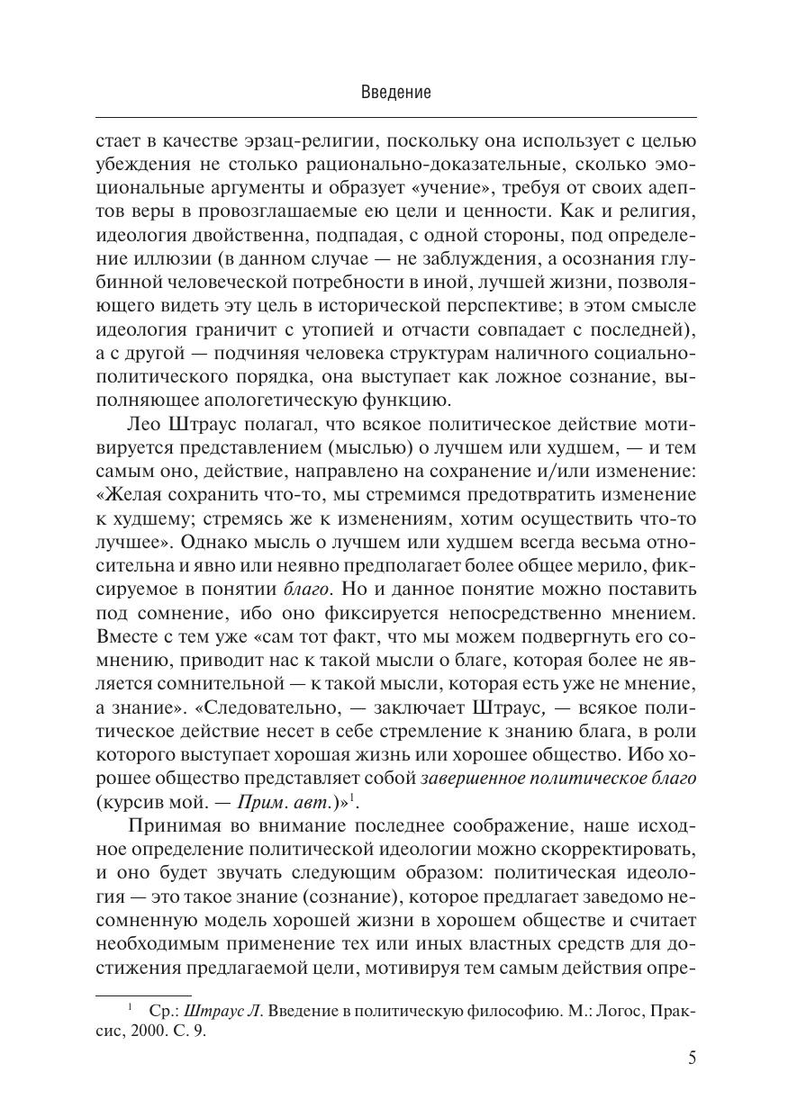 В работе определяется понятие политической идеологии, исходя из опыта «идеологии» де Траси, марксистский анализ (прежде всего исследования Л. Альтюссера) и «социология знания» К. Мангейма. Рассматривается мировоззренческое содержание классических идеологий — либерализма, консерватизма, коммунизма и фашизма. Дается обзор исторического транзита семантики терминов «либерализм», «консерватизм», «коммунизм», «фашизм». Для студентов-политологов и аспирантов вузов, а также специалистов в области теоретической социологии, культурологии, массовой коммуникации.