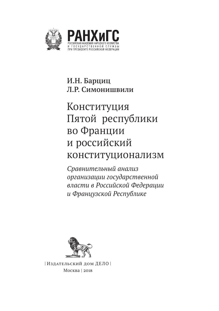 Конституция Пятой республики во Франции и российский конституционализм: сравнительный анализ организации государственной власти в Российской Федерации и Французской Республике