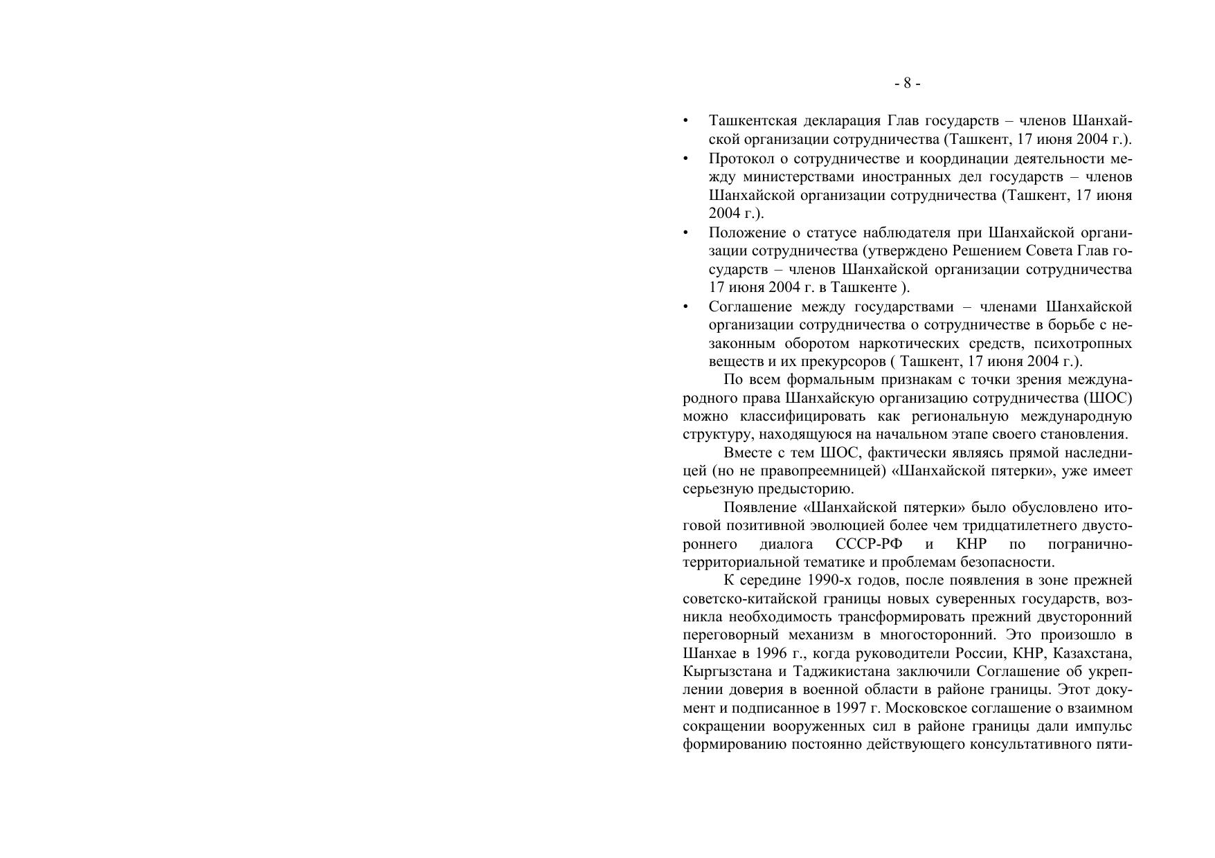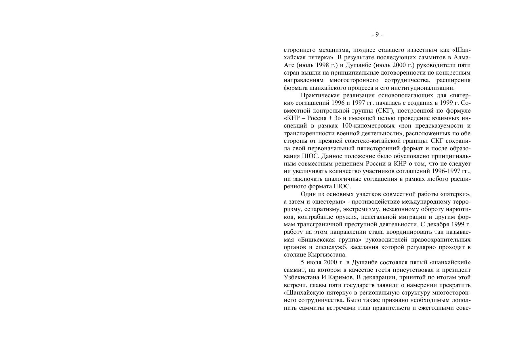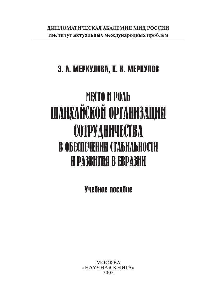Место и роль Шанхайской организации сотрудничества в обеспечении мира и стабильности в Евразии