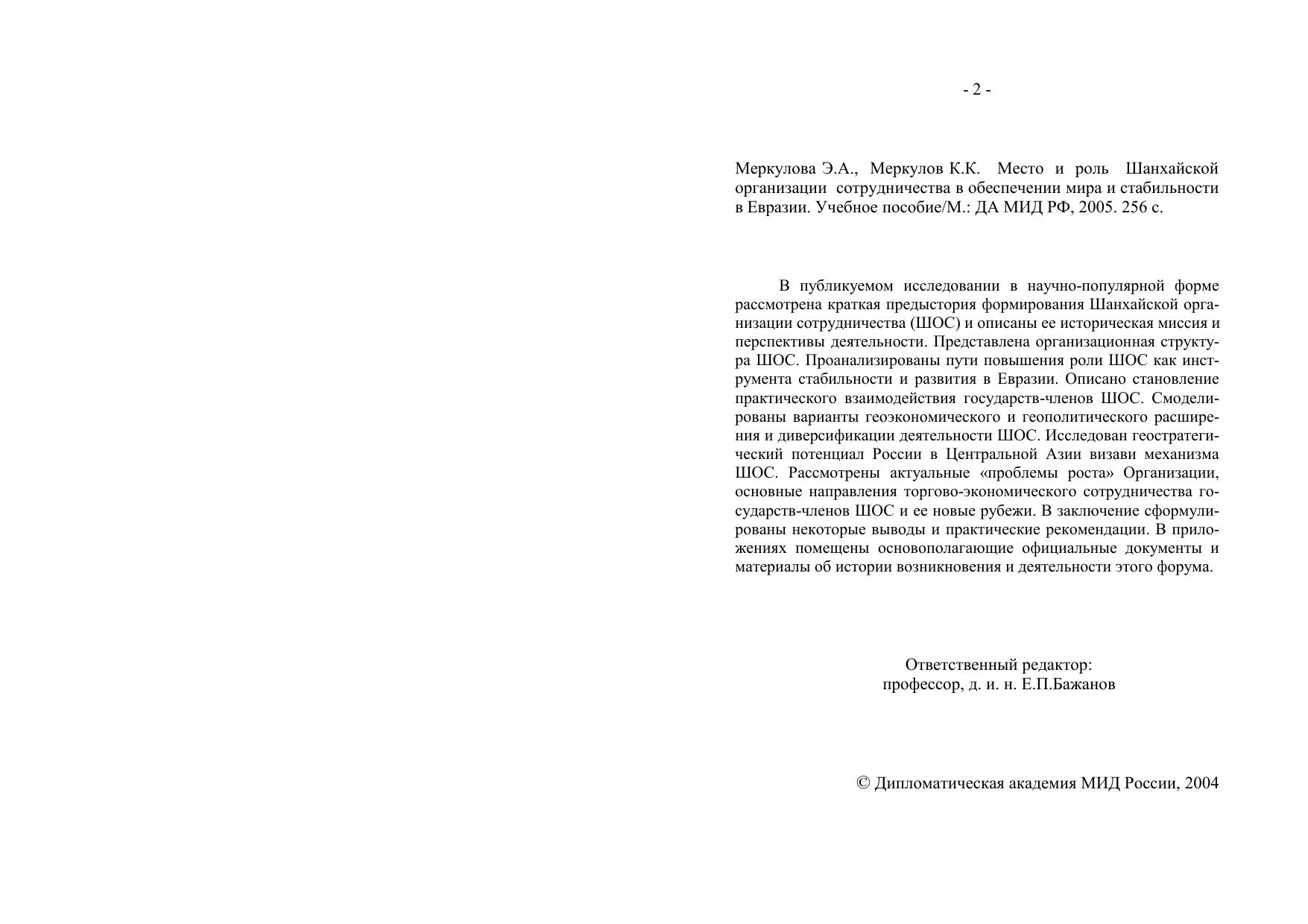 В публикуемом исследовании в научно-популярной форме рассмотрена краткая предыстория формирования Шанхайской организации сотрудничества (ШОС) и описаны ее историческая миссия и перспективы деятельности. Представлена организационная структура ШОС. Проанализированы пути повышения роли ШОС как инструмента стабильности и развития в Евразии. Описано становление практического взаимодействия государств-членов ШОС. Смоделированы варианты геоэкономического и геополитического расширения и диверсификации деятельности ШОС. Исследован геостратегический потенциал России в Центральной Азии визави механизма ШОС. Рассмотрены актуальные «проблемы роста» Организации, основные направления торгово-экономического сотрудничества государств-членов ШОС и ее новые рубежи. В заключение сформулированы некоторые выводы и практические рекомендации. В приложениях помещены основополагающие официальные документы и материалы об истории возникновения и деятельности этого форума.