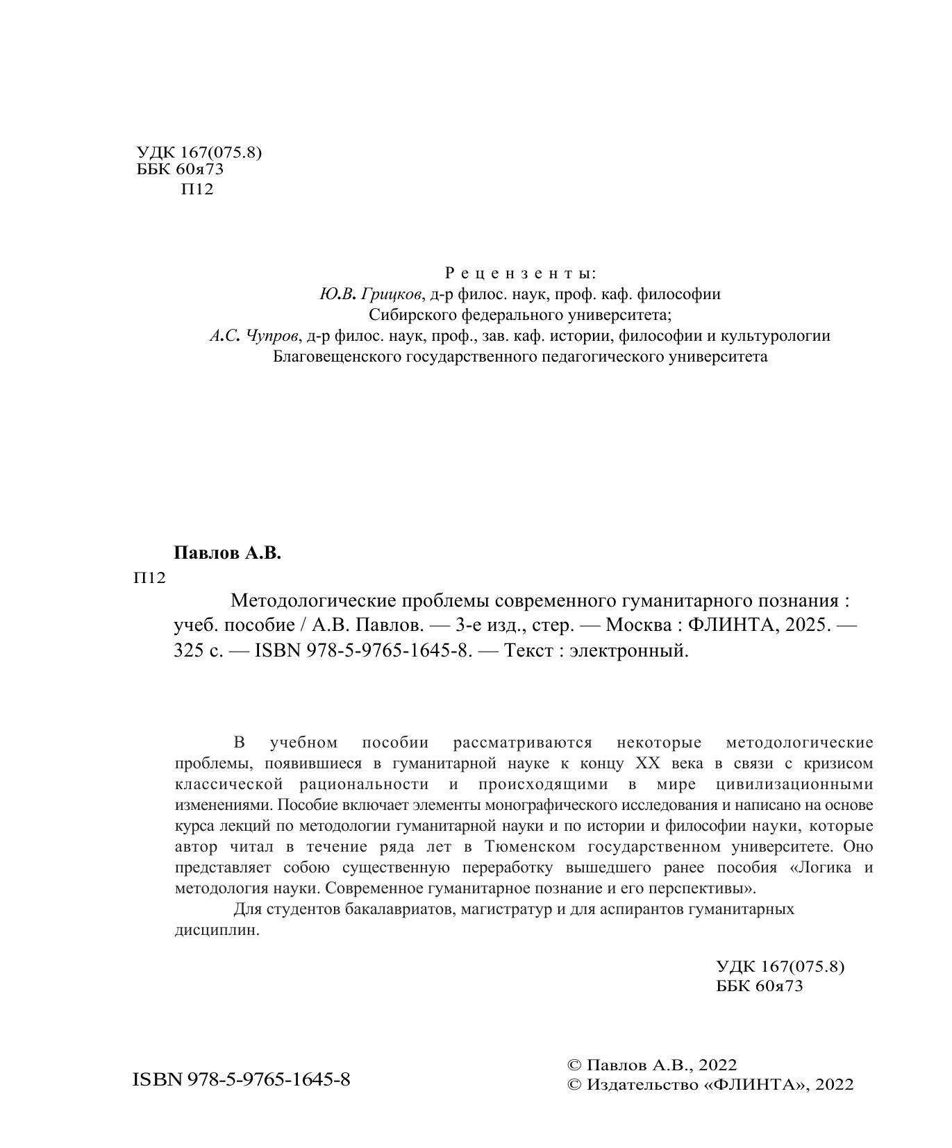 представляет собою существенную переработку вышедшего ранее пособия «Логика и методология науки. Современное гуманитарное познание и его перспективы». Для студентов бакалавриатов, магистратур и для аспирантов гуманитарных дисциплин.