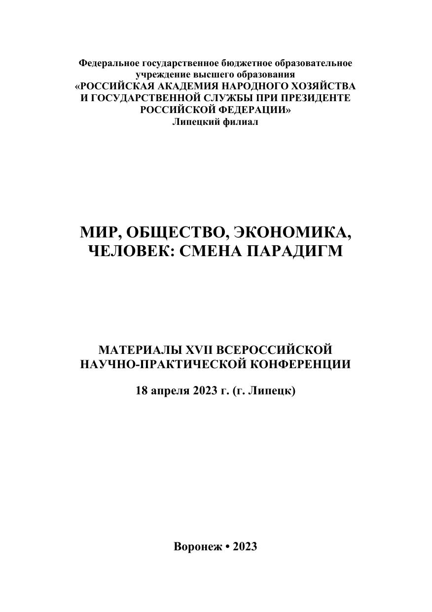 Мир, общество, экономика, человек: смена парадигм: материалы XVII Всероссийской научно-практической конференции (г. Липецк, 18 апреля 2023 г.