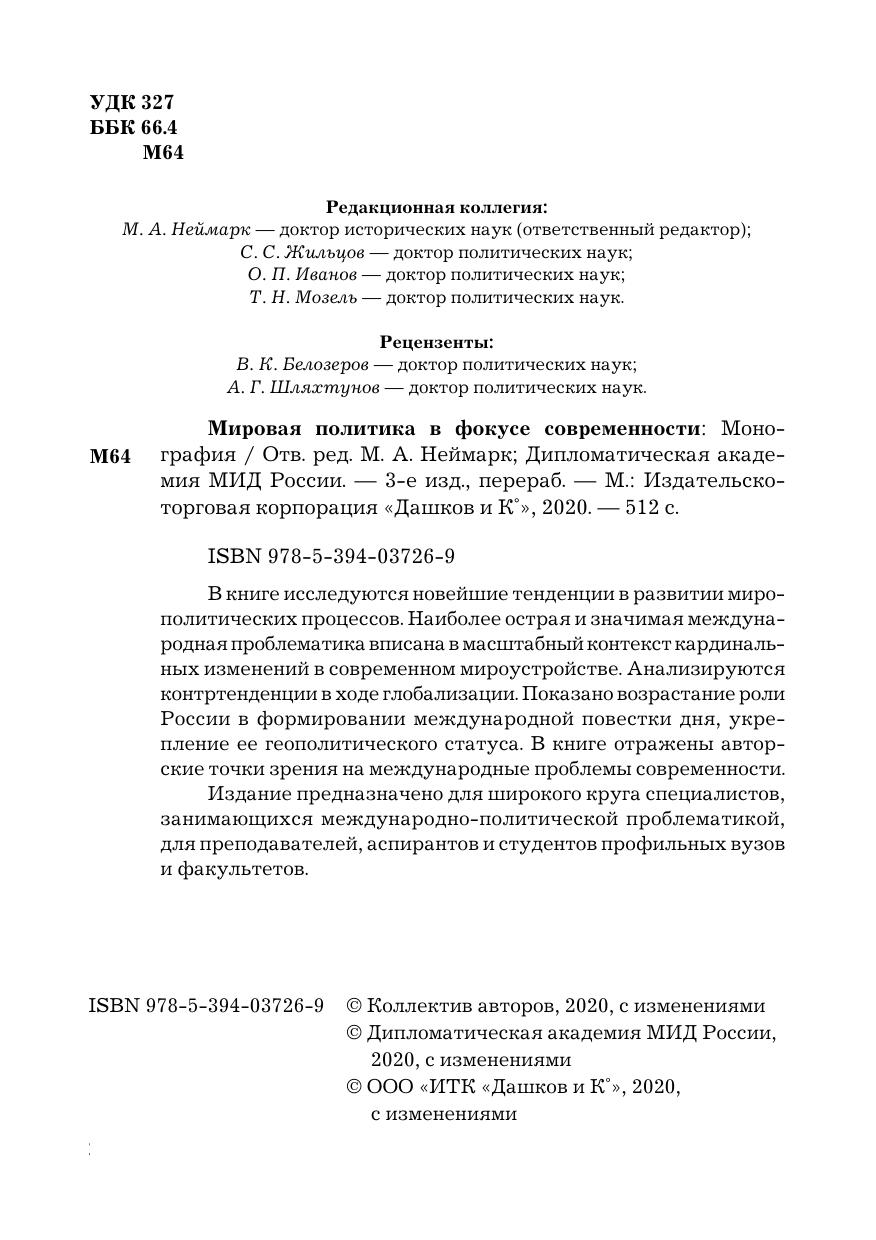 Издание предназначено для широкого круга специалистов, занимающихся международно-политической проблематикой, для преподавателей, аспирантов и студентов профильных вузов и факультетов.