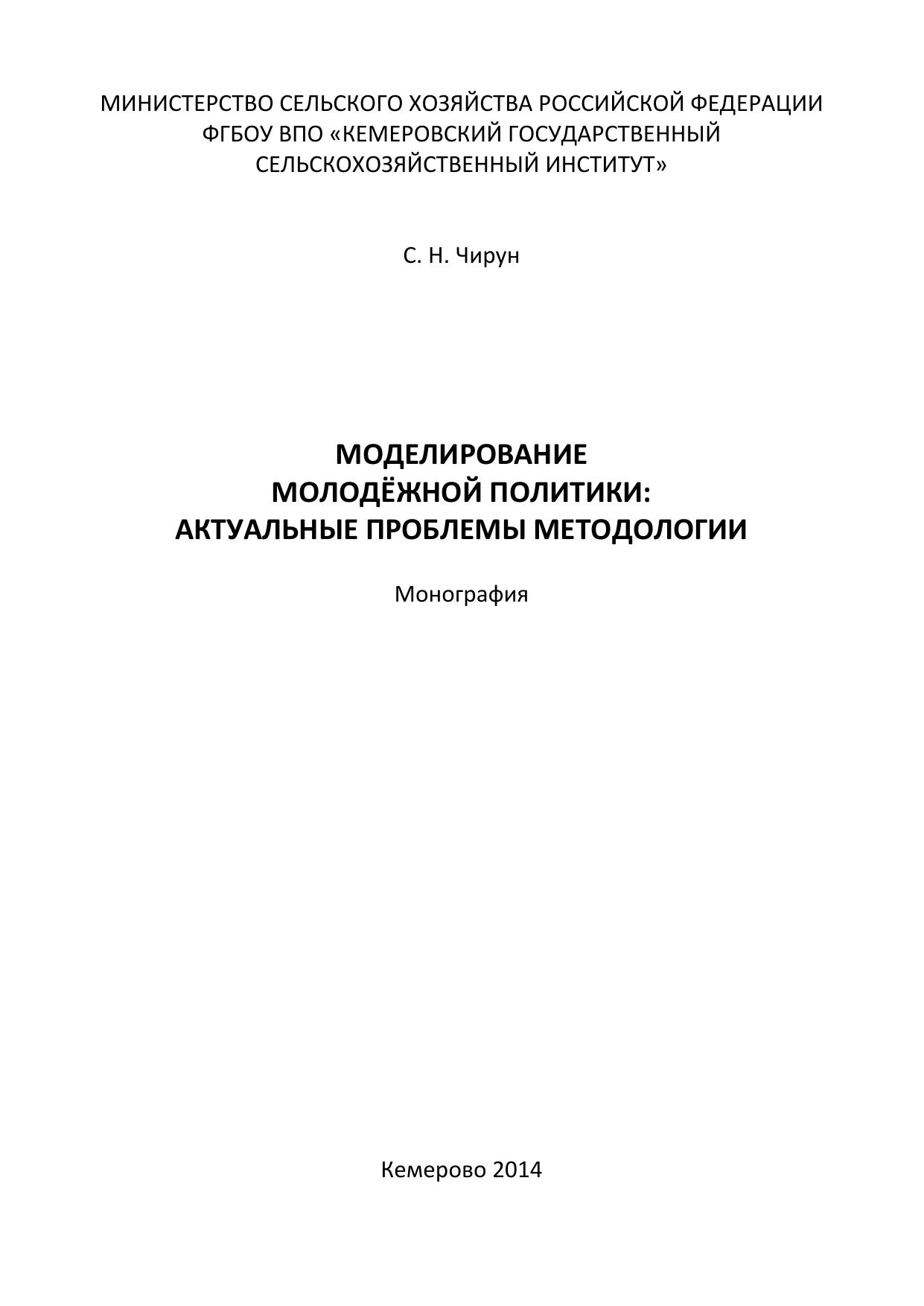 Монография Моделирование молодёжной политики: актуальные проблемы методологии, представляет собой попытку моделирование и системного анализа молодёжной политики.