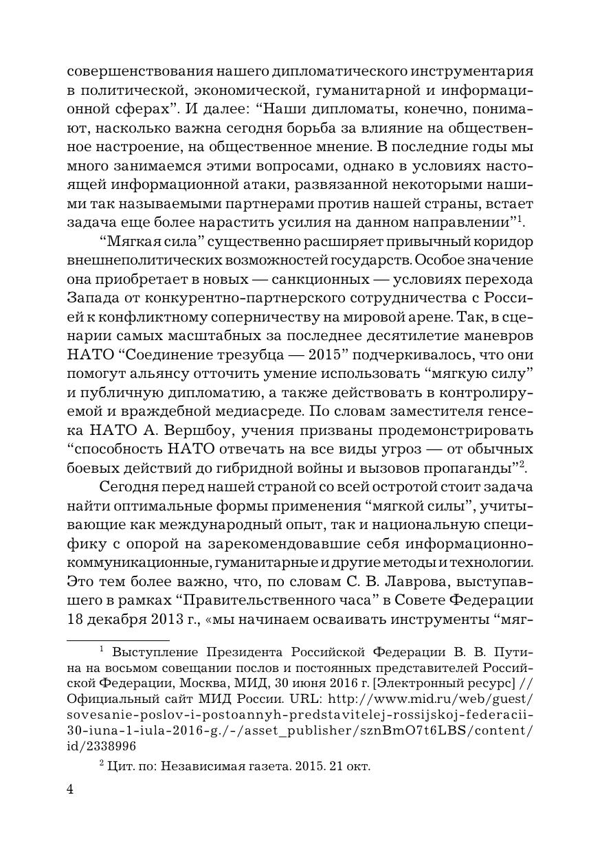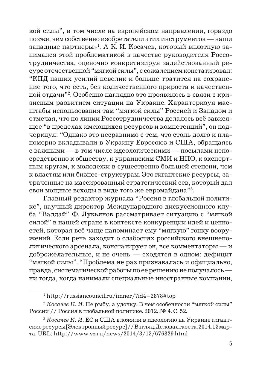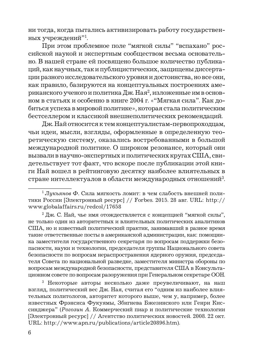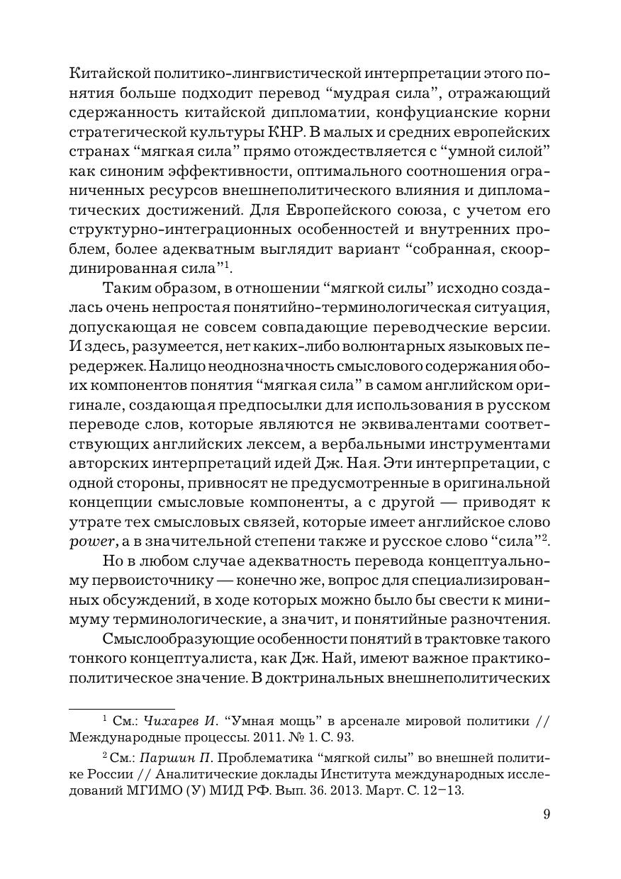В книге раскрываются особенности проблемного поля «мягкой силы» в кардинально изменившейся геополитической реальности наших дней. В рамках концептуализации «мягкой силы» и анализа баланса между ней и «жесткой силой» исследуется феномен «умной силы» как взаимосвязанная целостность различных компонентов — культурно-гуманитарных, цивилизационных, социально-политических, экономических, военных и т. д. Отражены различные точки зрения на проблематику «мягкой силы», российский опыт ее критического анализа. Издание предназначено для преподавателей, аспирантов и магистрантов профильных вузов и факультетов, а также для широкого круга читателей, интересующихся мировой политикой и международными отношениями.