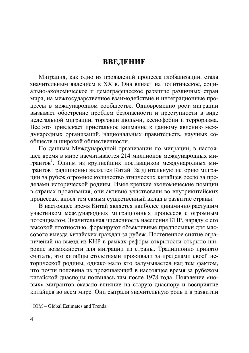 Монография посвящена исследованию феномена «новой» китайской миграции, появишегося после старта реформ в 1978 г. Рассматриваются причины ее появления структура, численность, основные направления и каналы, а также влияние волны «новой» миграции на сложившиеся к концу 1970-х годов китайские сообщества за рубежом и их связи с Китаем. Исследуется миграционное законодательство и дается анализ основных правовых актов, регулирующих миграционную сферу, а также сферу взаимодействия с зарубежными китайскими диаспорами. Для студентов, обучающихся по специальностям «зарубежное регионоведение» и «международные отношения», аспирантов и исследователей, изучающих китайскую миграцию и политику Китая в ее отношении.