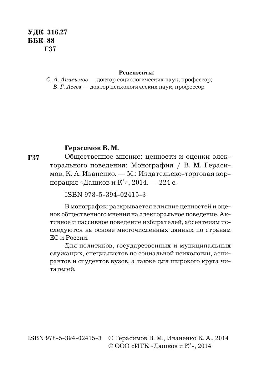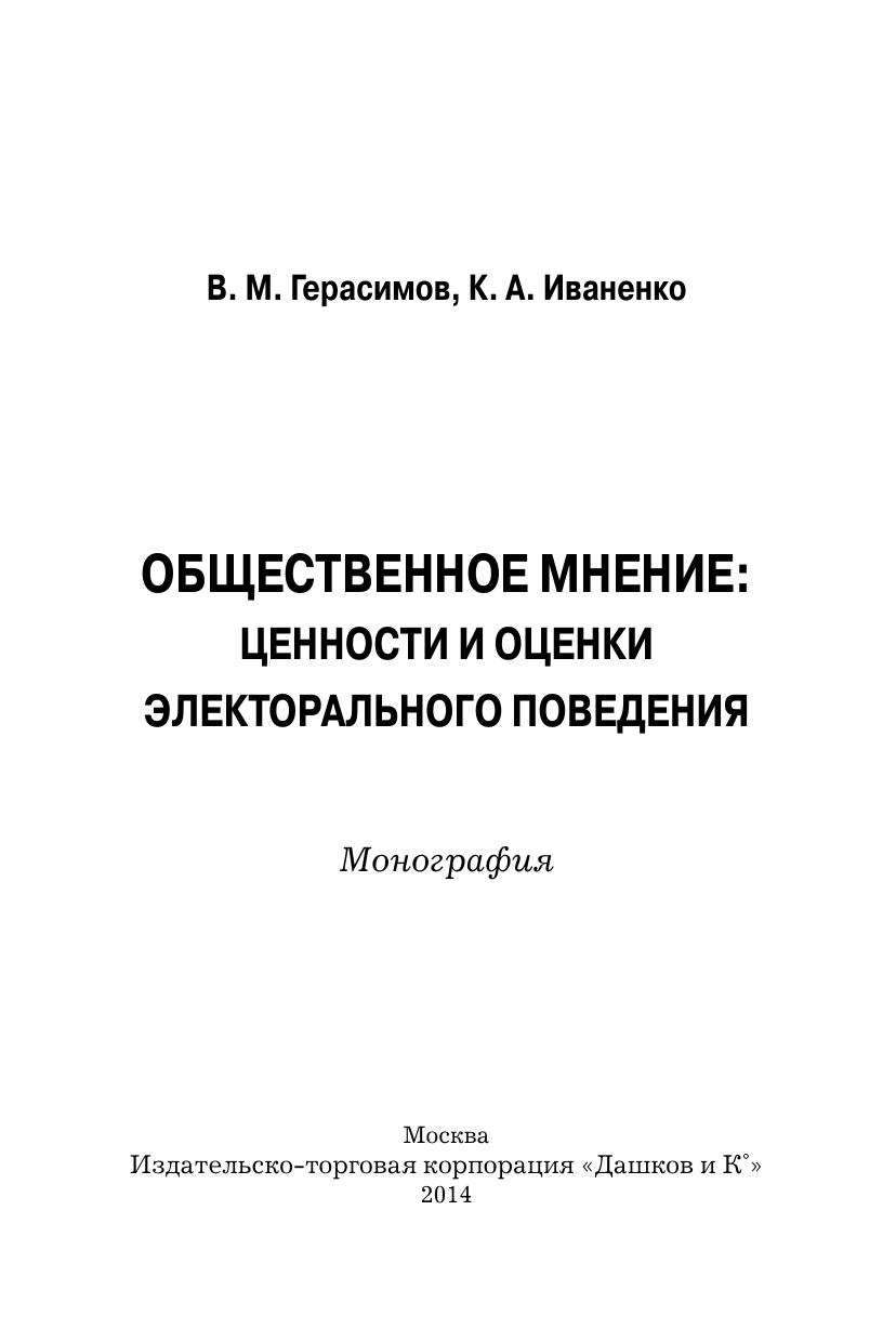 Общественное мнение: ценности и оценки электорального поведения: Монография