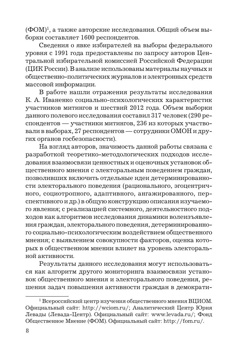 В монографии раскрывается влияние ценностей и оценок общественного мнения на электоральное поведение. Активное и пассивное поведение избирателей, абсентеизм исследуются на основе многочисленных данных по странам ЕС и России.