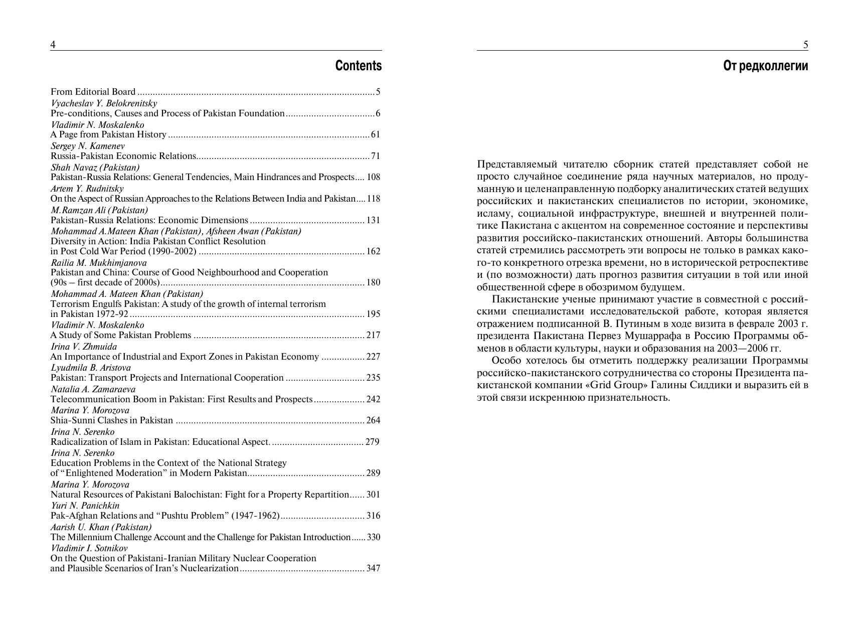 Настоящий сборник содержит статьи по широкому кругу вопросов, начиная от истории образования государства Пакистан, его дальнейшего экономического, внутриполитического и внешнеполитического развития за годы независимости вплоть до настоящего времени. При этом акцент сделан на анализе различных аспектов российско-пакистанских экономических и политических отношений. Среди авторов сборника как российские, так и пакистанские эксперты.
