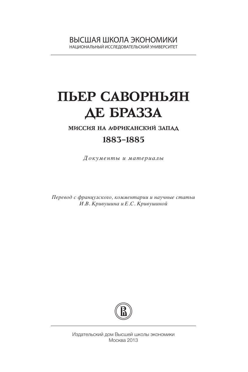 Книга, подготовленная доктором исторических наук профессором НИУ ВШЭ И.В. Кривушиным и кандидатом филологических наук Е.С. Кривушиной, представляет собой продолжение первого научного отечественного издания документов и материалов, связанных с деятельностью знаменитого французского путешественника и исследователя Пьера Саворньяна де Бразза (1852–1905). В ней собраны документы и материалы, относящиеся к Третьей экспедиции (1883–1885) де Бразза в Африку (Габон и Конго), которая положила начало созданию Французской колониальной империи в Центральной Африке. Публикуемые отчеты, воспоминания и письма де Бразза и его соратников содержат уникальную информацию о начальном этапе французского
