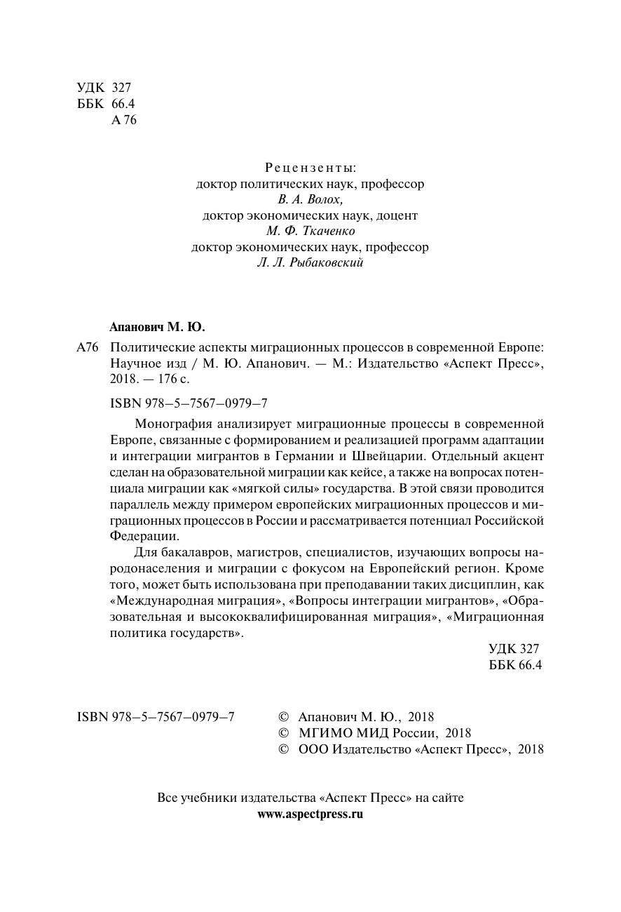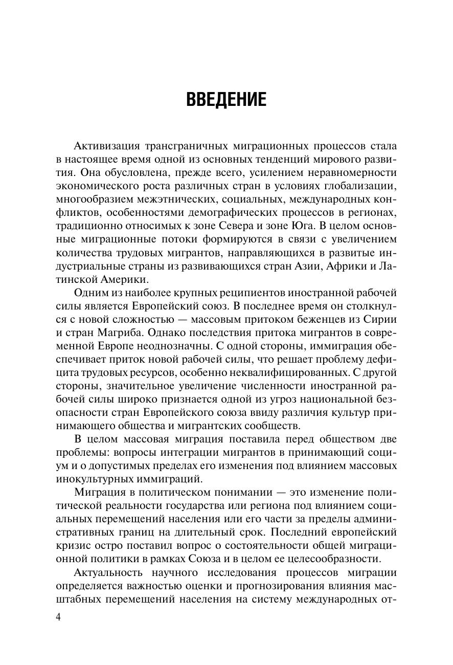 Монография анализирует миграционные процессы в современной Европе, связанные с формированием и реализацией программ адаптации и интеграции мигрантов в Германии и Швейцарии. Отдельный акцент сделан на образовательной миграции как кейсе, а также на вопросах потенциала миграции как «мягкой силы» государства. В этой связи проводится параллель между примером европейских миграционных процессов и миграционных процессов в России и рассматривается потенциал Российской Федерации. Для бакалавров, магистров, специалистов, изучающих вопросы народонаселения и миграции с фокусом на Европейский регион. Кроме того, может быть использована при преподавании таких дисциплин, как «Международная миграция», «Вопросы интеграции мигрантов», «Образовательная и высококвалифицированная миграция», «Миграционная политика государств».