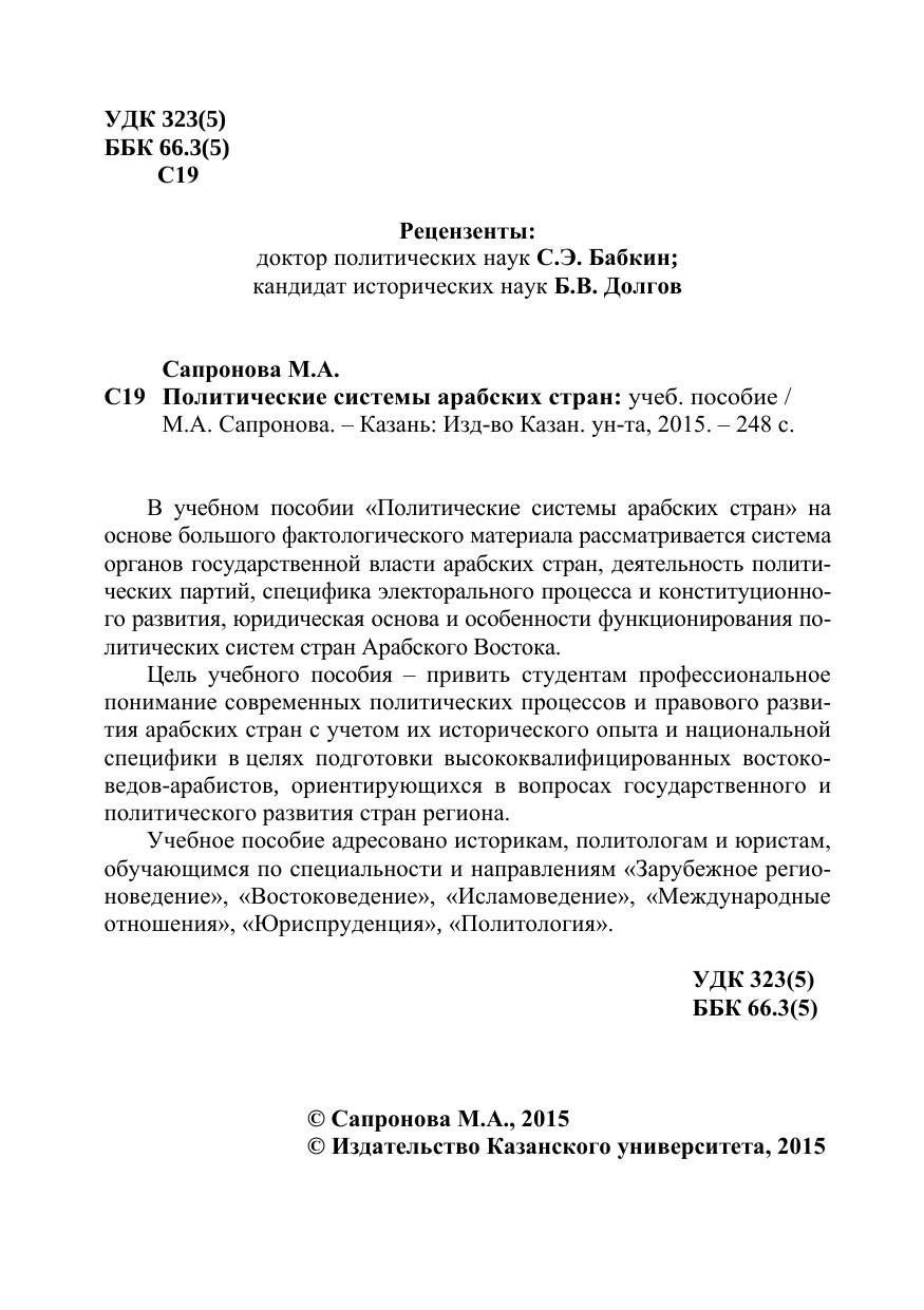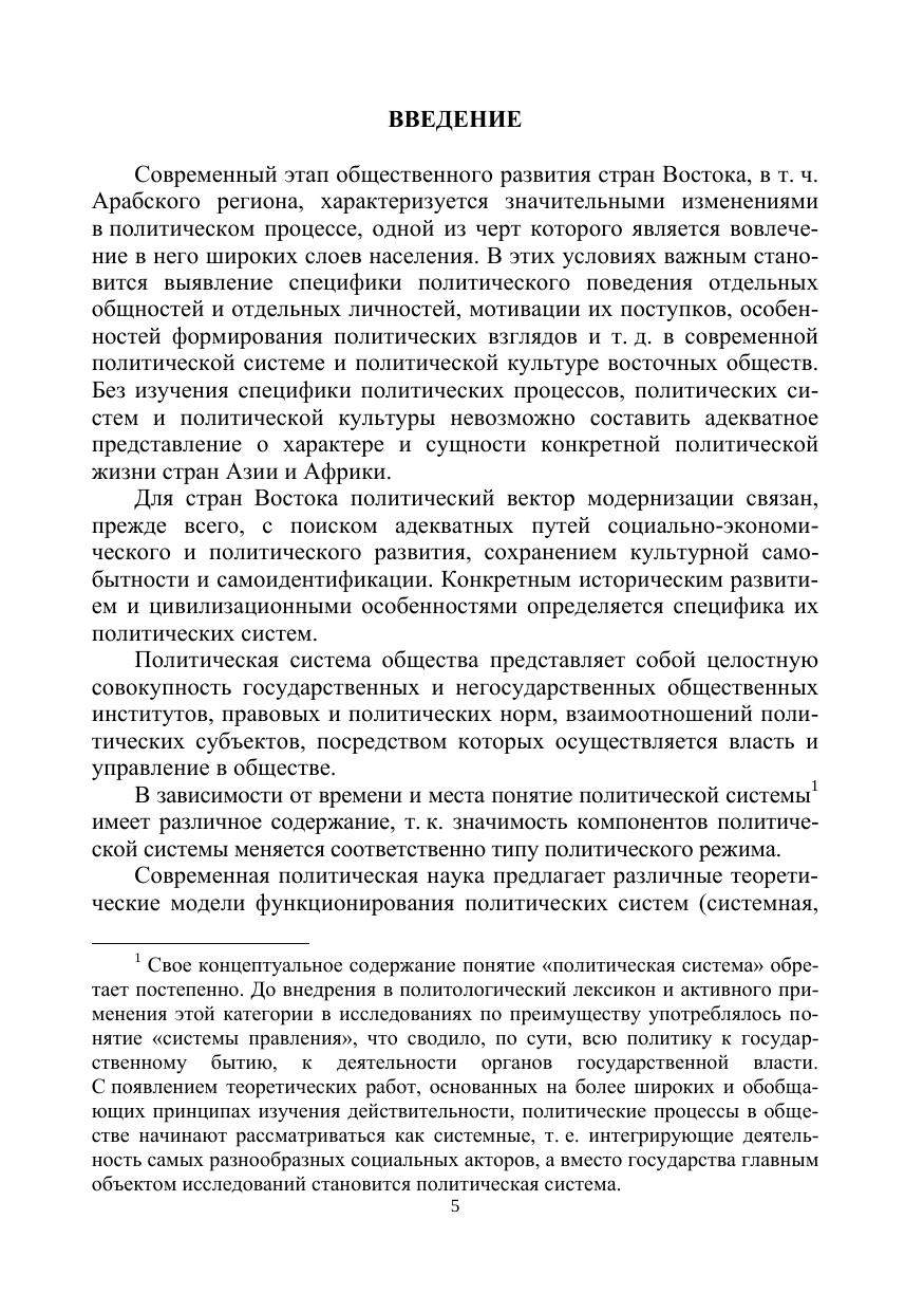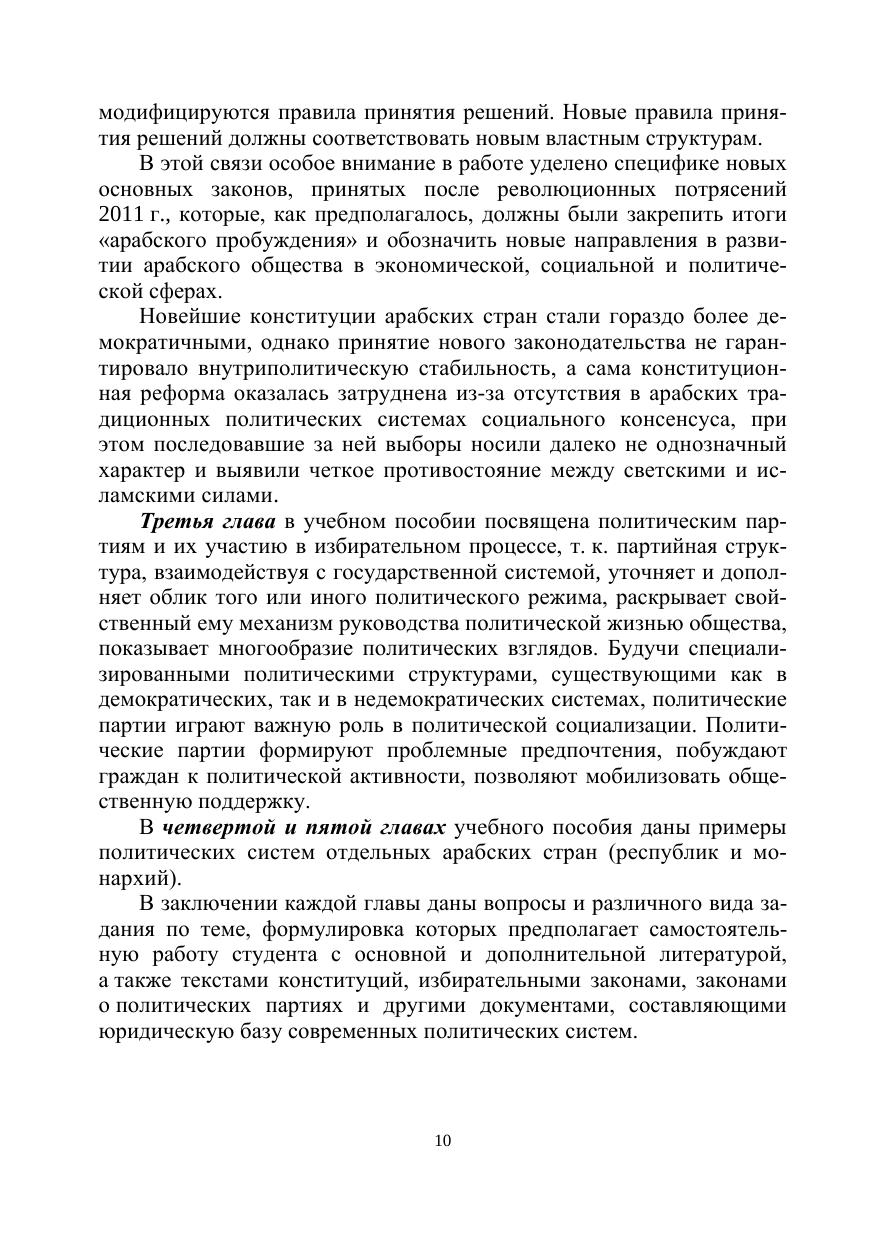 В учебном пособии «Политические системы арабских стран» на основе большого фактологического материала рассматривается система органов государственной власти арабских стран, деятельность политических партий, специфика электорального процесса и конституционного развития, юридическая основа и особенности функционирования политических систем стран Арабского Востока. Цель учебного пособия – привить студентам профессиональное понимание современных политических процессов и правового развития арабских стран с учетом их исторического опыта и национальной специфики в целях подготовки высококвалифицированных востоковедов-арабистов, ориентирующихся в вопросах государственного и политического развития стран региона.