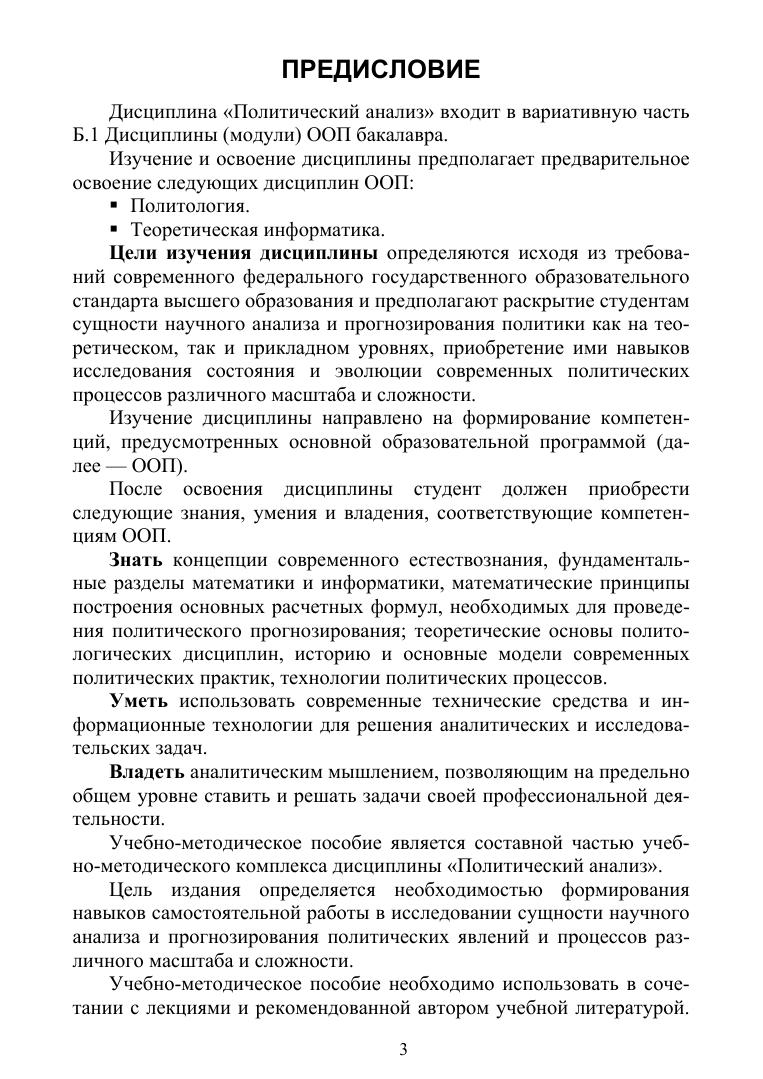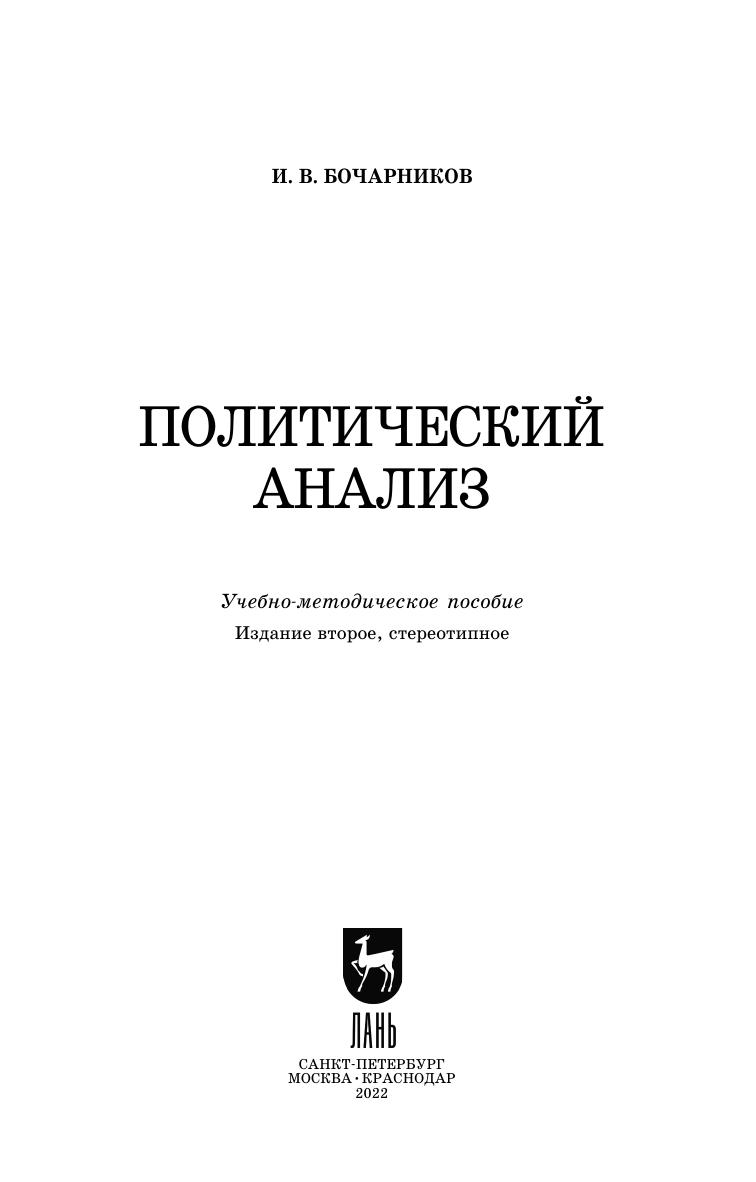 Учебно-методическое пособие подготовлено на основе ФГОС последнего поколения и соответствует рабочей программе дисциплины «Политический анализ» МГТУ им. Н. Э. Баумана. Издание включает содержание лекций, планы семинарских занятий, список рекомендуемой литературы. Для подготовки к зачету представлен перечень вопросов. Предлагаемый перечень рекомендованных тем для подготовки рефератов и научных статей способствует надлежащему усвоению учебного материала.