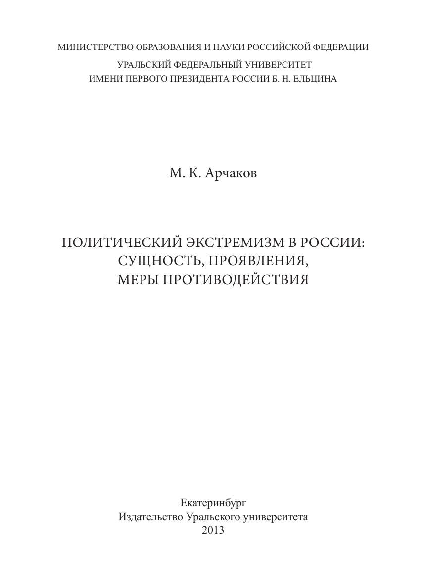 Политический экстремизм в России: сущность, проявления, меры противодействия: монография