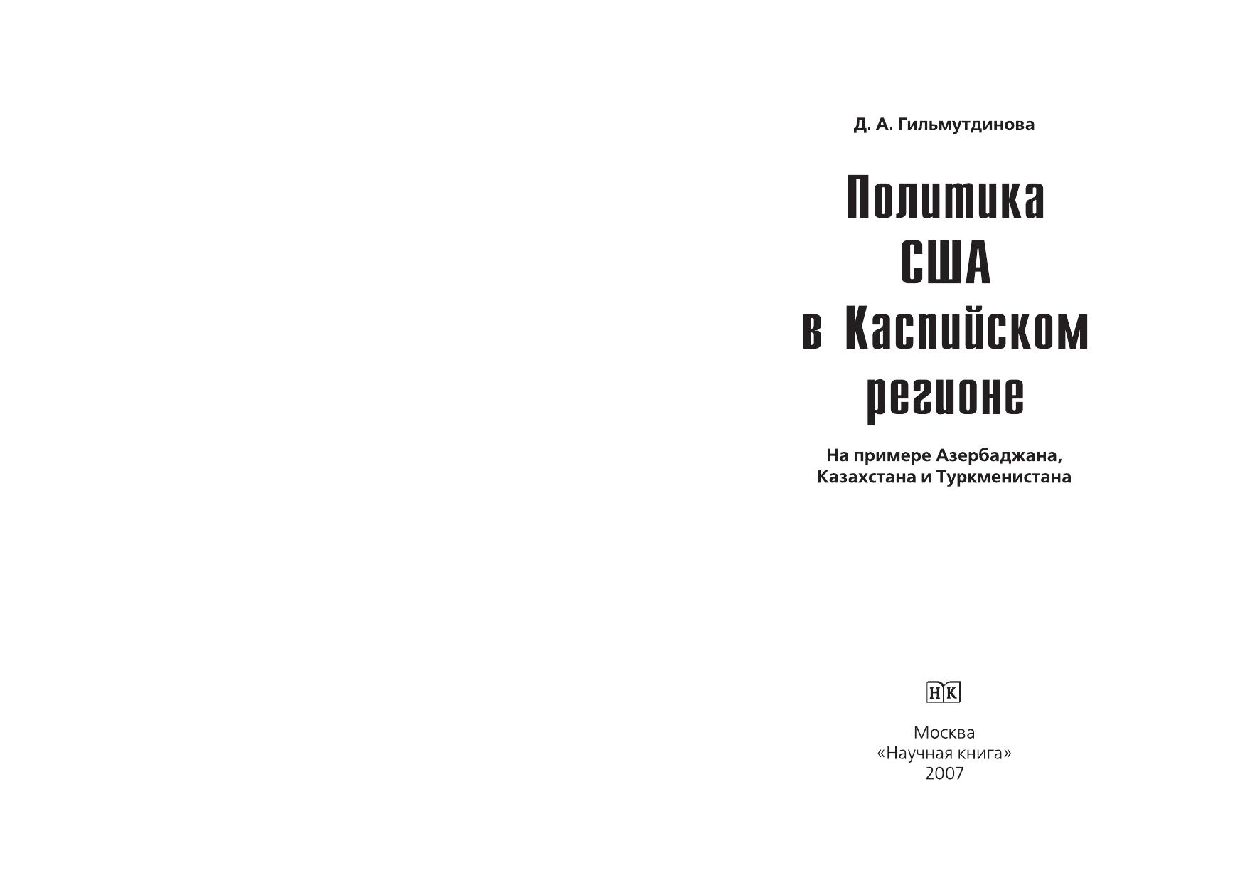 Политика США в Каспийском регионе. На примере Азербайджана, Казахстана и Туркменистана. Монография