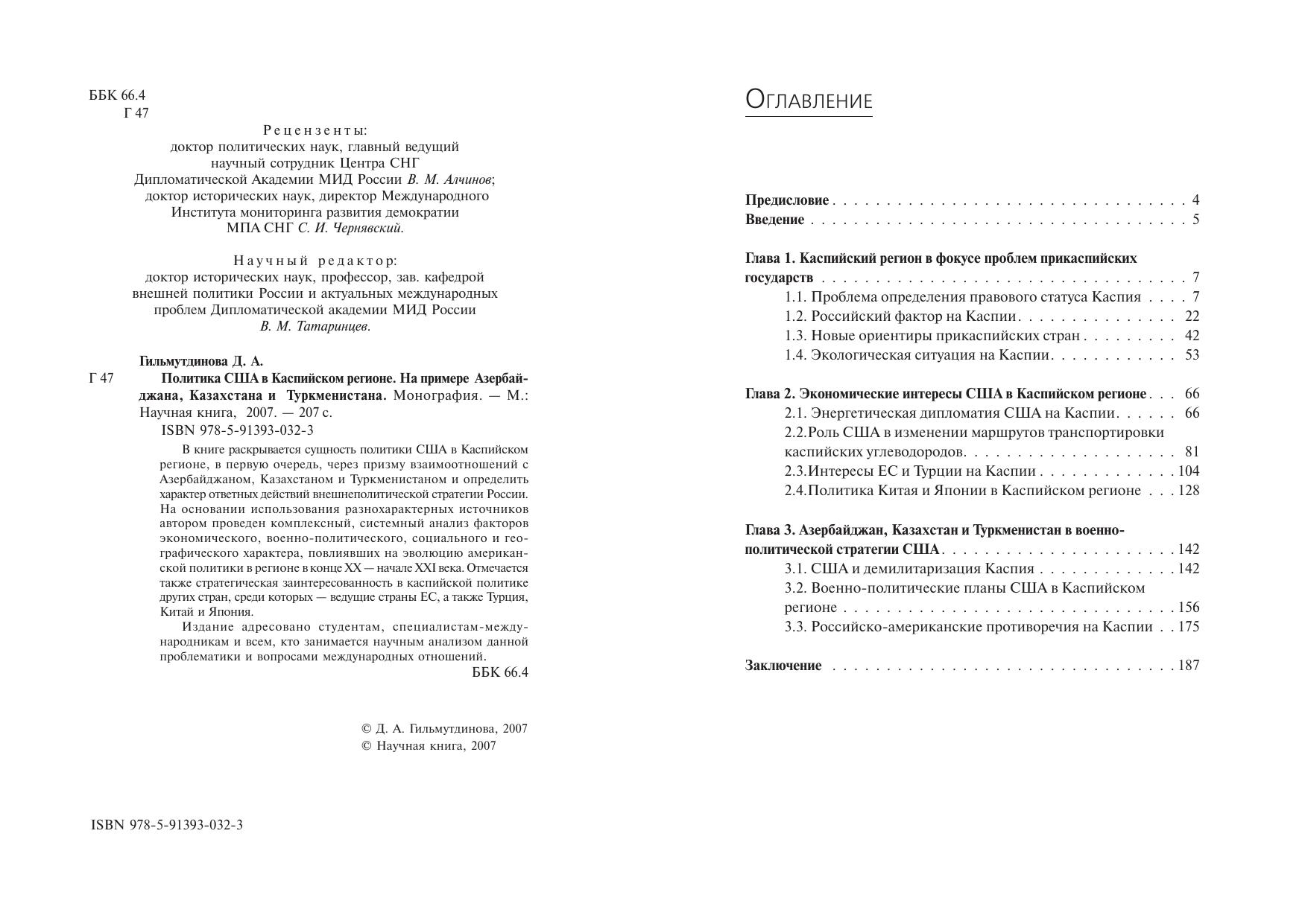 В книге раскрывается сущность политики США в Каспийском регионе, в первую очередь, через призму взаимоотношений с Азербайджаном, Казахстаном и Туркменистаном и определить характер ответных действий внешнеполитической стратегии России. На основании использования разнохарактерных источников автором проведен комплексный, системный анализ факторов экономического, военно-политического, социального и географического характера, повлиявших на эволюцию американской политики в регионе в конце ХХ — начале XXI века. Отмечается также стратегическая заинтересованность в каспийской политике других стран, среди которых — ведущие страны ЕС, а также Турция, Китай и Япония. Издание адресовано студентам, специалистам-международникам и всем, кто занимается научным анализом данной проблематики и вопросами международных отношений .