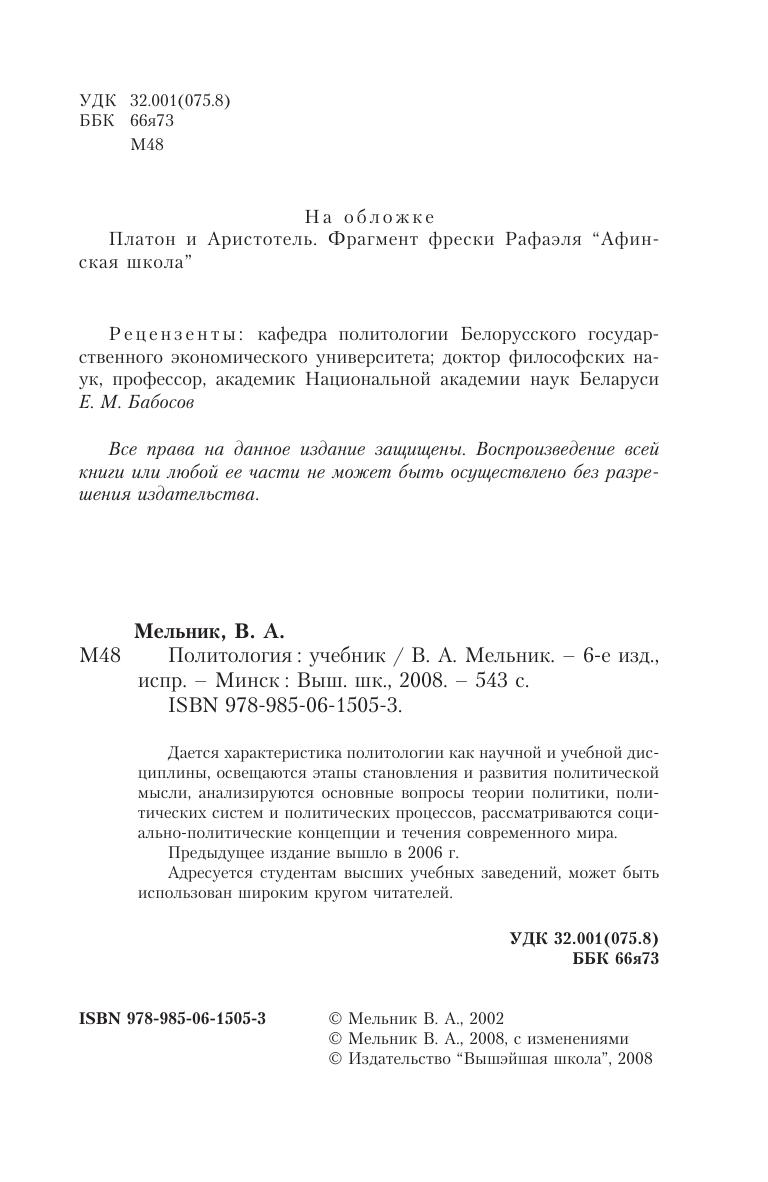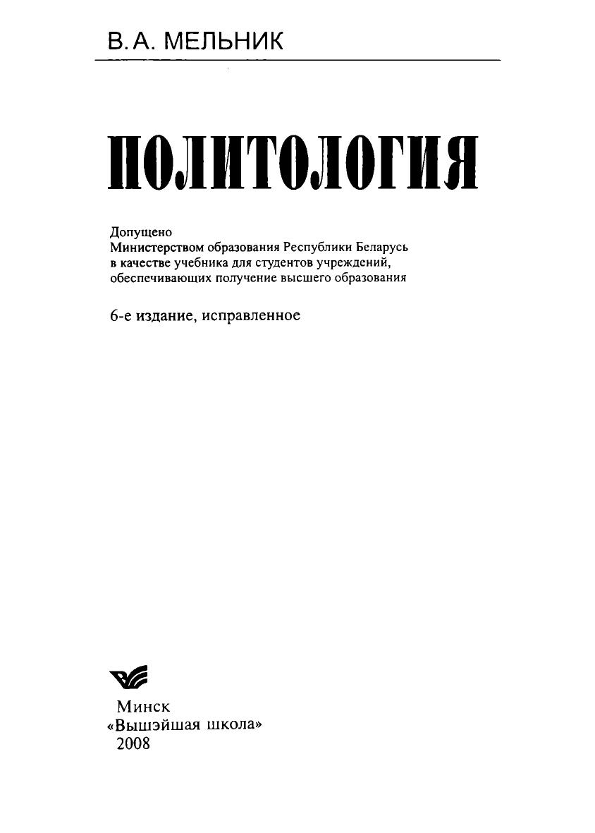 Дается характеристика политологии как научной и учебной дисциплины, освещаются этапы становления и развития политической мысли, анализируются основные вопросы теории политики, политических систем и политических процессов, рассматриваются социально-политические концепции и течения современного мира. Для студентов вузов, может быть использован широким кругом читателей.