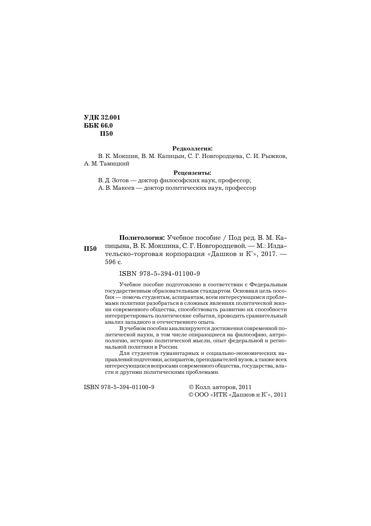 Учебное пособие подготовлено в соответствии с ФГОС. Основная цель пособия- помочь студентам, аспирантам, всем интересующимся проблемами политики разобраться в сложных явлениях политической жизни современного общества, способствовать развитию их способности интерпретировать политические события, проводить сравнительный анализ западного и отечественного опыта.В учебном пособии анализируются достижения современной политической науки, в том числе опирающиеся на философию, антропологию, историю политической мысли, опыт федеральной и региональной политики в России.