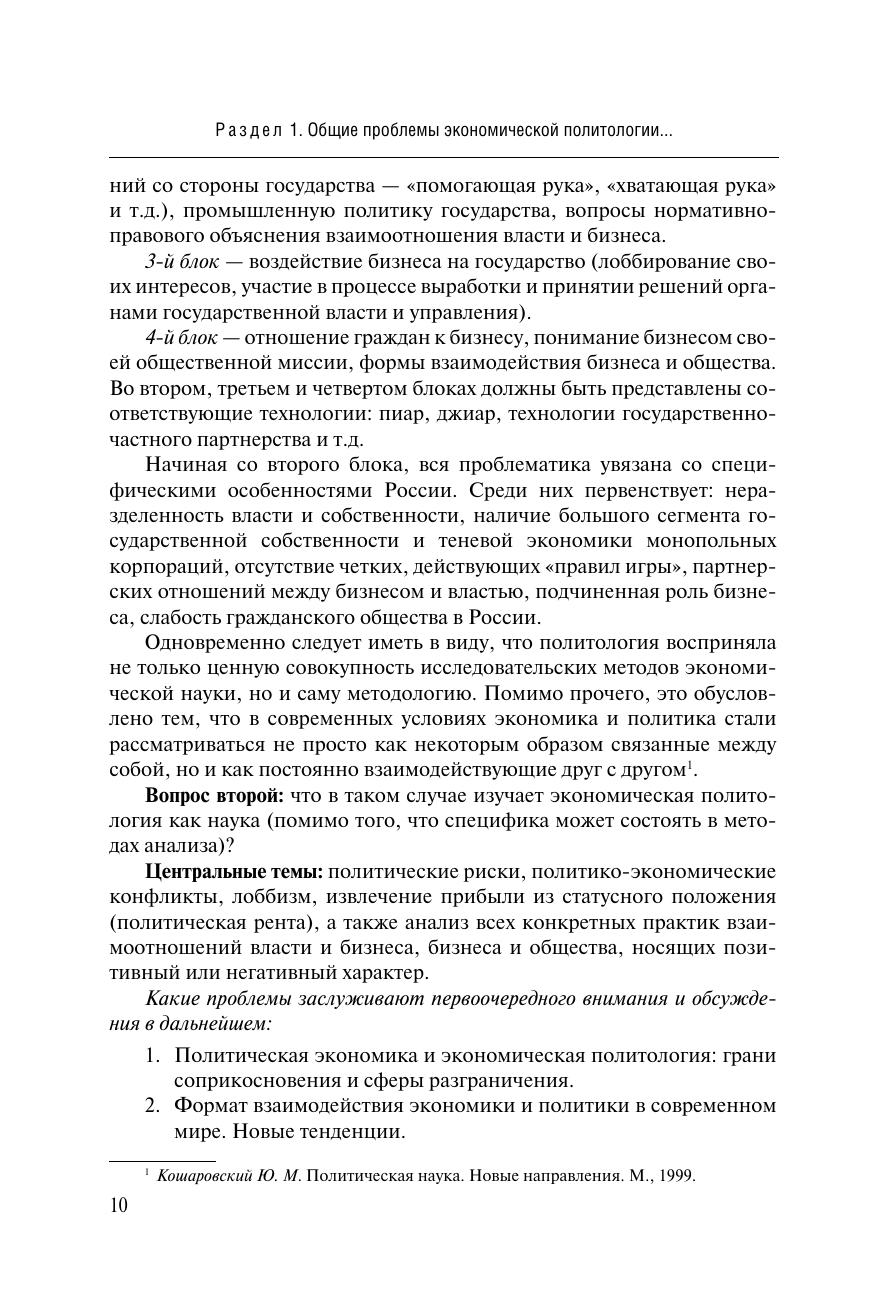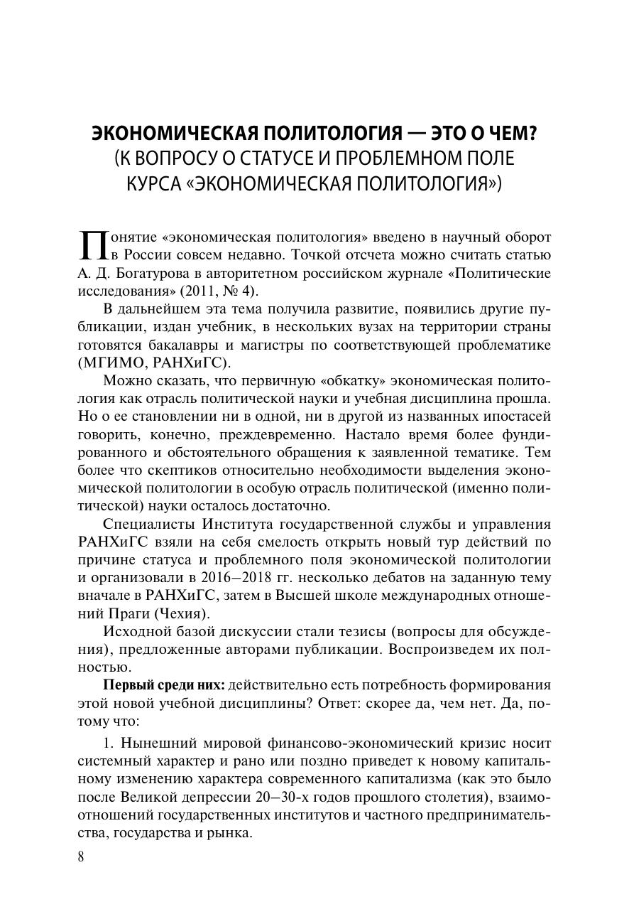 Экономическая политология уже заявила о себе как отрасль политической науки и учебная дисциплина. Настало время более фундированного и обстоятельного обращения к представленной теме. В монографии представлены точки зрения ученых политологов на предметное поле экономической политологии. Книга рассчитана на специалистов в области политической науки, а также на студентов, изучающих политические дисциплины.