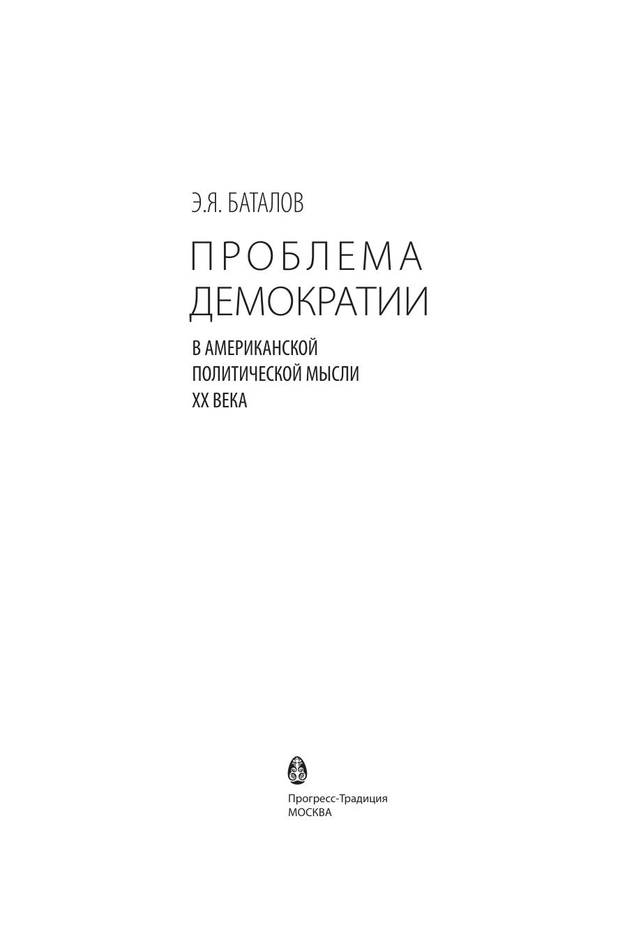 Проблема демократии в американской политической мысли ХХ века (из истории политической философии современности)