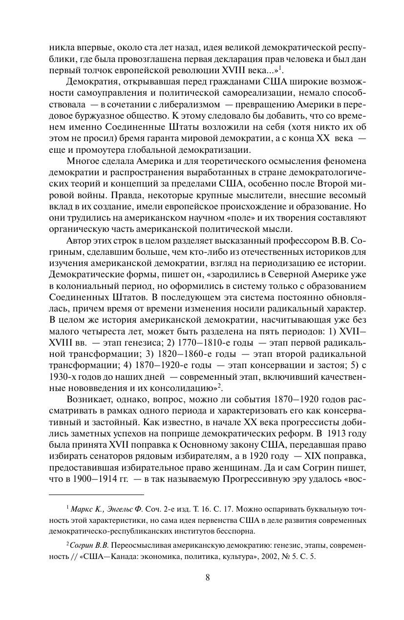 Проблема демократии всегда занимала важное место в политической мысли Соединенных Штатов Америки. Но в условиях ХХ века с его политическими и экономическими кризисами, войнами, революциями, ставившими под вопрос устойчивость и само существование демократических режимов, эта проблема становится одной из центральных и привлекает внимание широкого круга американских исследователей.