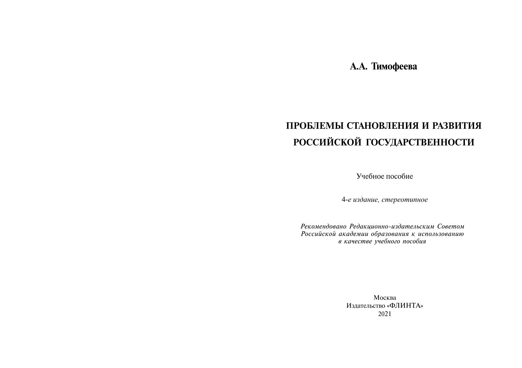 Проблемы становления и развития российской государственности