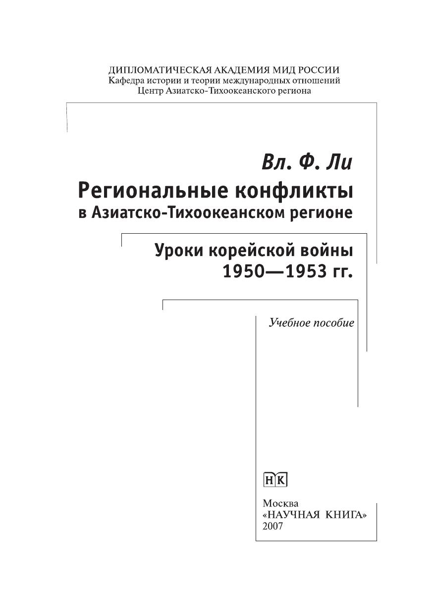Региональные конфликты в Азиатско-Тихоокеаском регионе. Уроки корейской войны 1950-1953 гг.