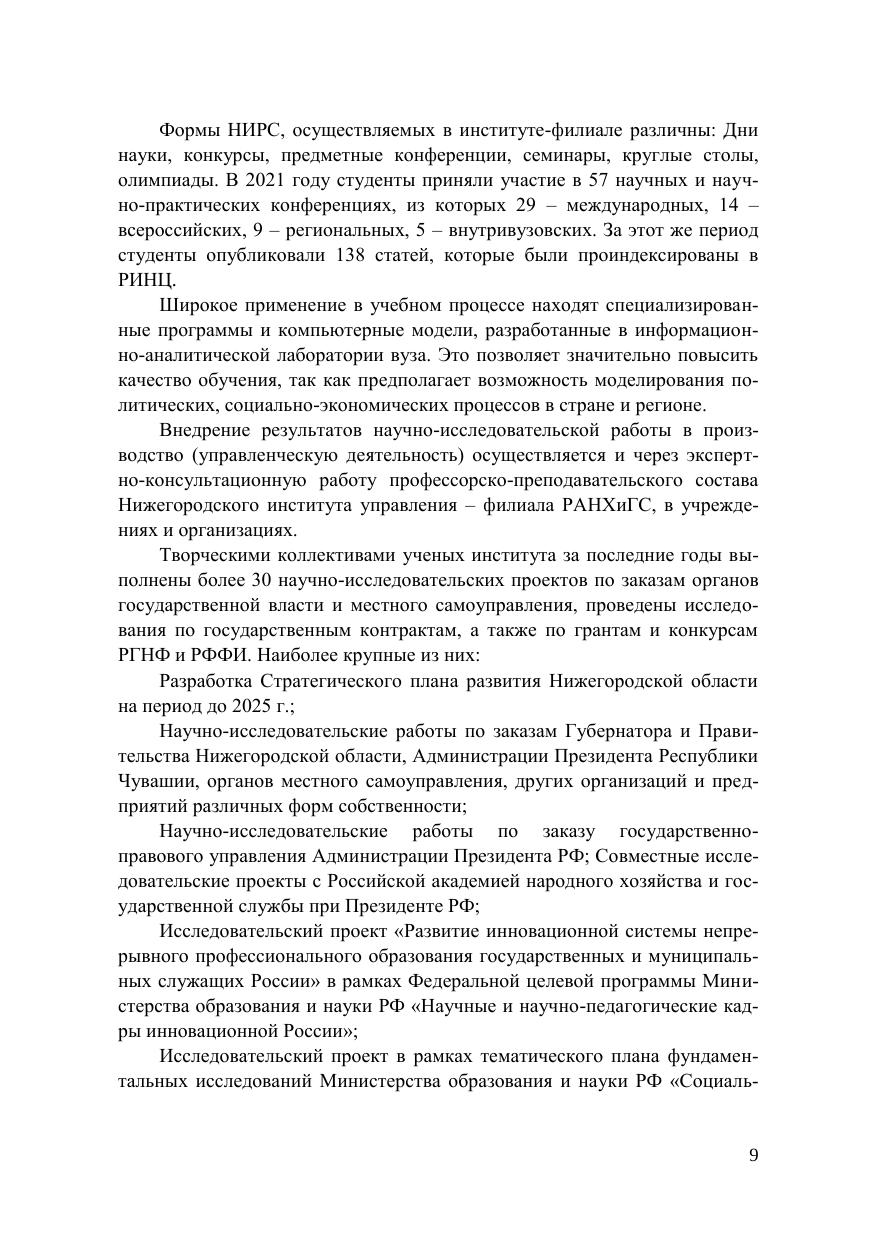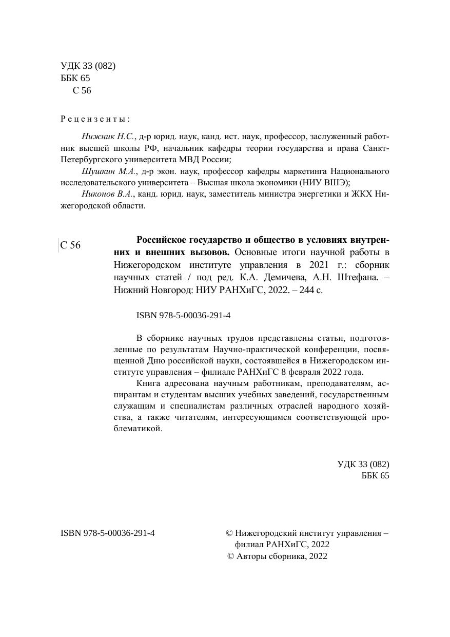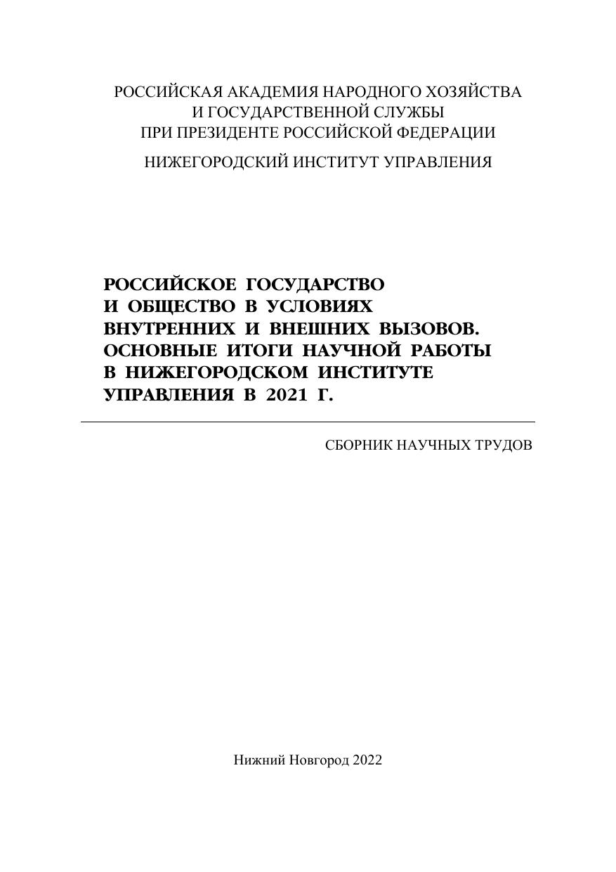 Российское государство и общество в условиях внутренних и внешних вызовов. Основные итоги научной работы в Нижегородском институте управления в 2021 г.: сборник научных статей
