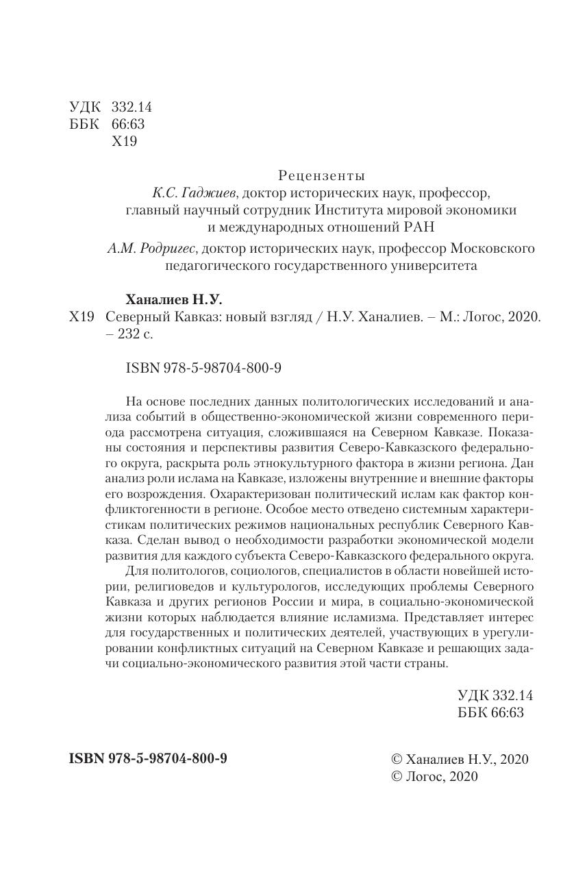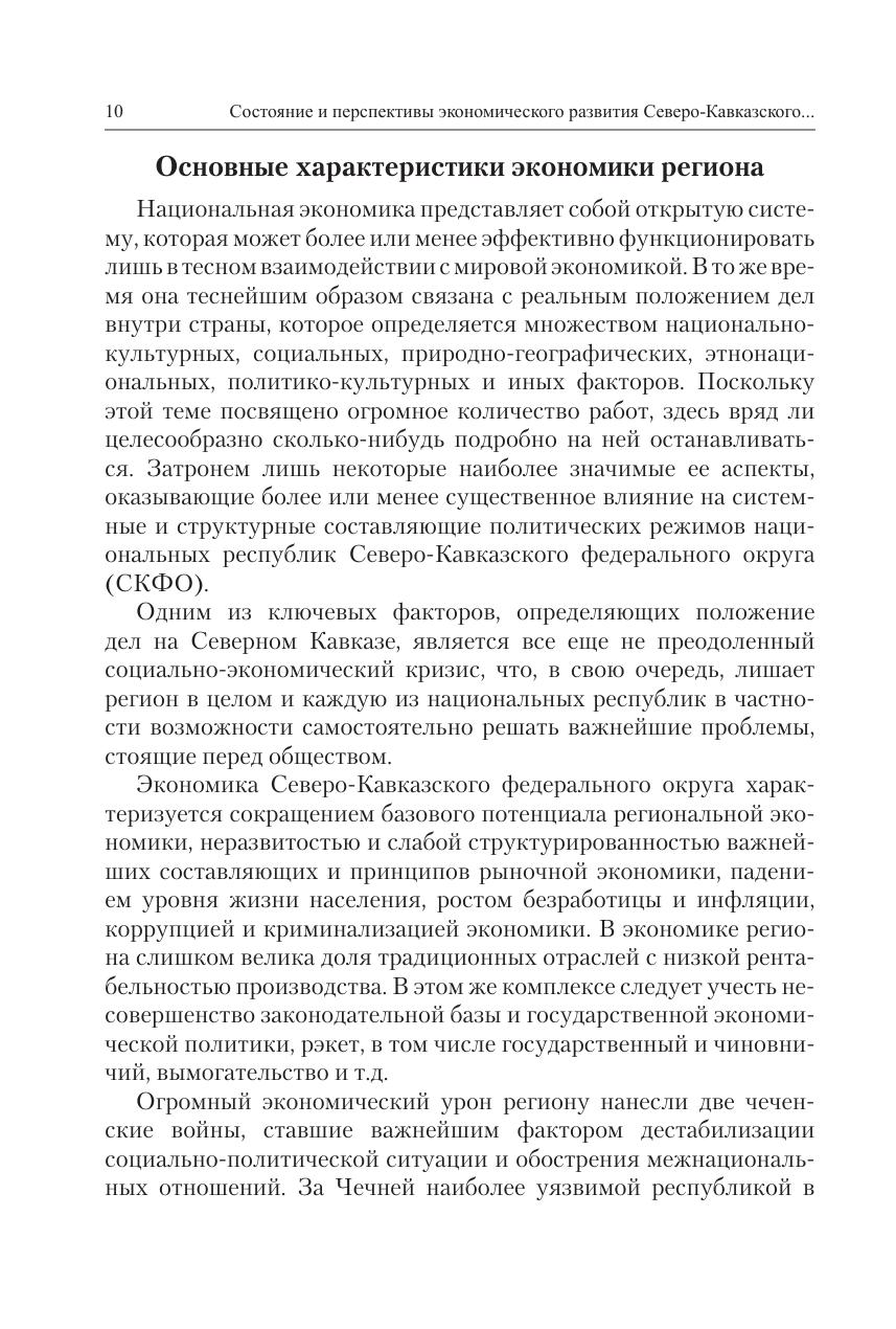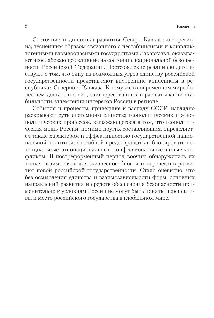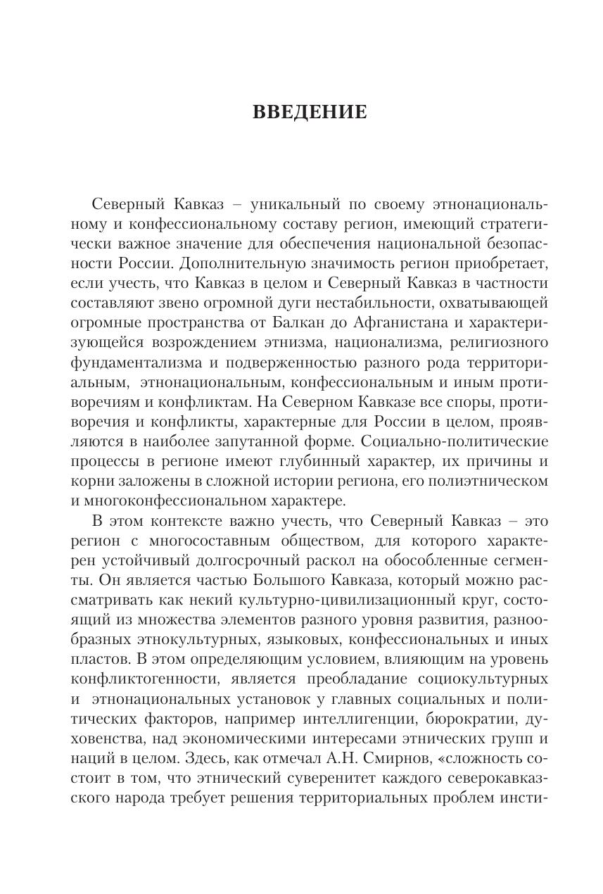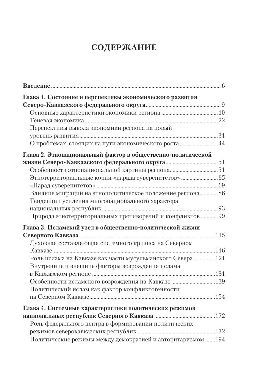 На основе последних данных политологических исследований и анализа событий в общественно-экономической жизни современного периода рассмотрена ситуация, сложившаяся на Северном Кавказе. Показаны состояния и перспективы развития Северо-Кавказского федерального округа, раскрыта роль этнокультурного фактора в жизни региона. Дан анализ роли ислама на Кавказе, изложены внутренние и внешние факторы его возрождения. Охарактеризован политический ислам как фактор конфликтогенности в регионе. Особое место отведено системным характеристикам политических режимов национальных республик Северного Кавказа. Сделан вывод о необходимости разработки экономической модели развития для каждого субъекта Северо-Кавказского федерального округа. Для политологов, социологов, специалистов в области новейшей истории, религиоведов и культурологов, исследующих проблемы Северного Кавказа и других регионов России и мира, в социально-экономической жизни которых наблюдается влияние исламизма. Представляет интерес для государственных и политических деятелей, участвующих в урегулировании конфликтных ситуаций на Северном Кавказе и решающих задачи социально-экономического развития этой части страны.