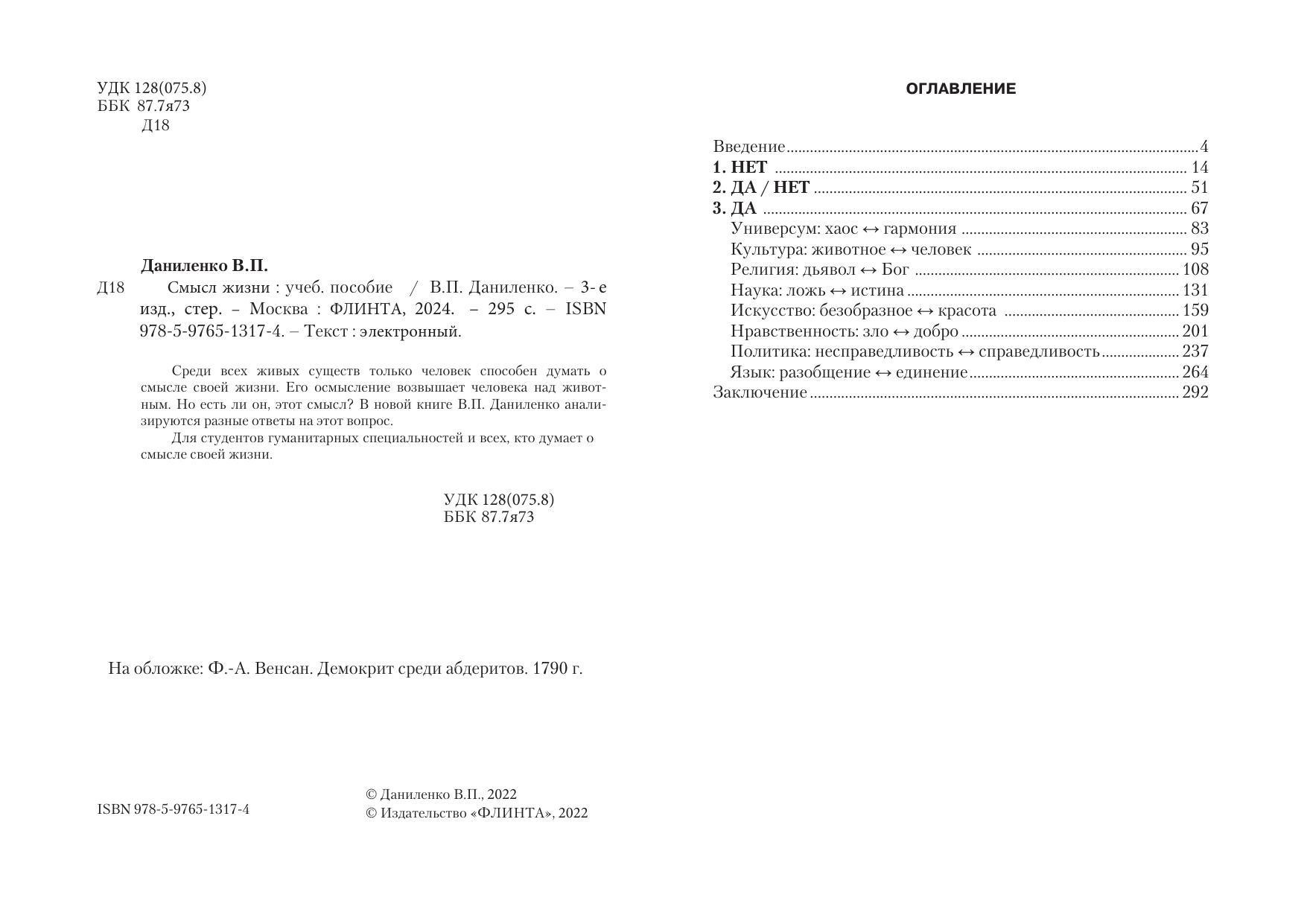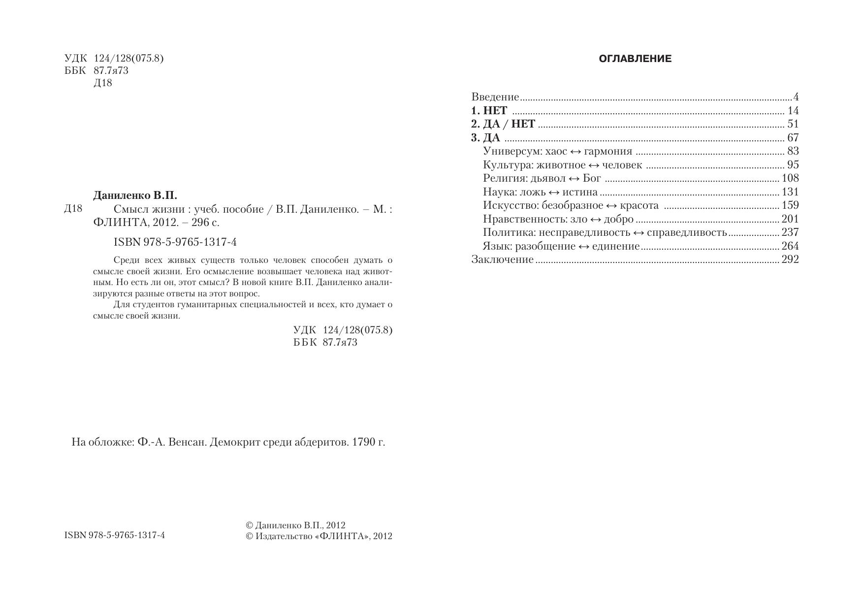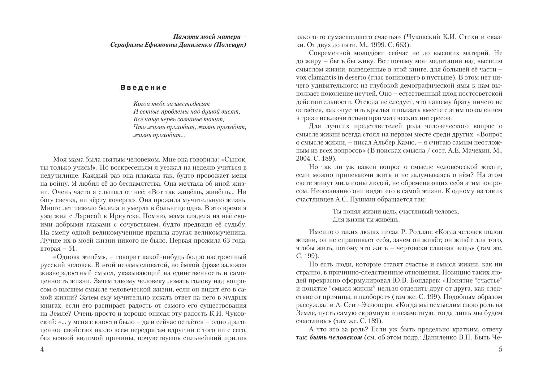 Среди всех живых существ только человек способен думать о смысле своей жизни. Его осмысление возвышает человека над живот-ным. Но есть ли он, этот смысл? В новой книге В.П. Даниленко анали-зируются разные ответы на этот вопрос.