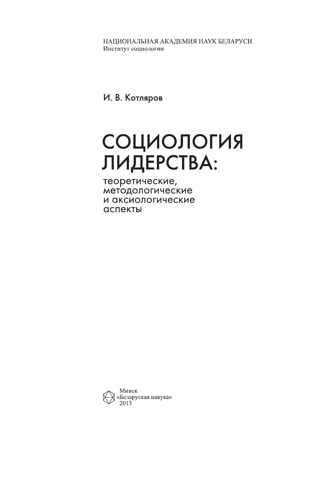 Социология лидерства: теоретические, методологические и аксиологические аспекты
