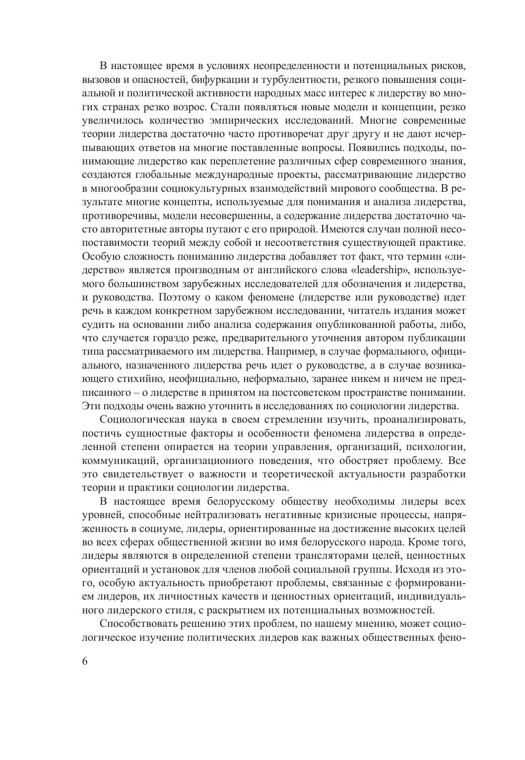 В монографии раскрыты основные теоретические, методологические и аксиологические аспекты лидерства, по результатам многолетнего социологического мониторинга проанализировано отношение жителей Беларуси к основным политическим процессам и лидерам независимого белорусского государства. Предназначена для студентов и аспирантов высших учебных заведений, специализирующихся в социологии, политической социологии и политологии, для практиков, занимающихся проблемами социологии лидерства, и для всех, кто интересуется вопросами политики.
