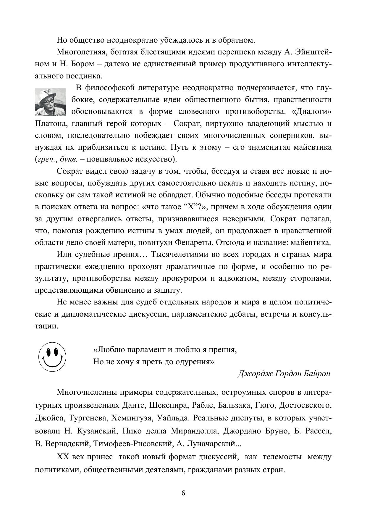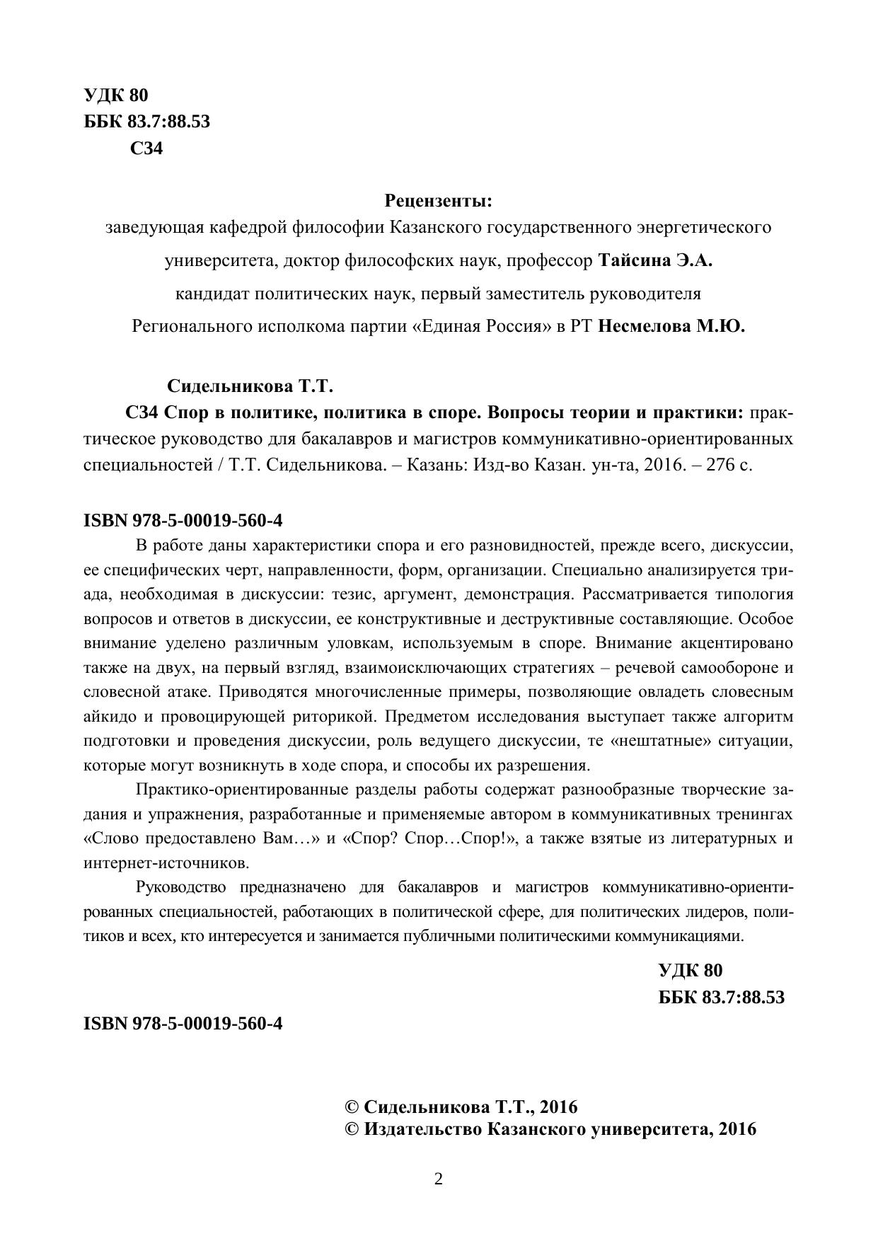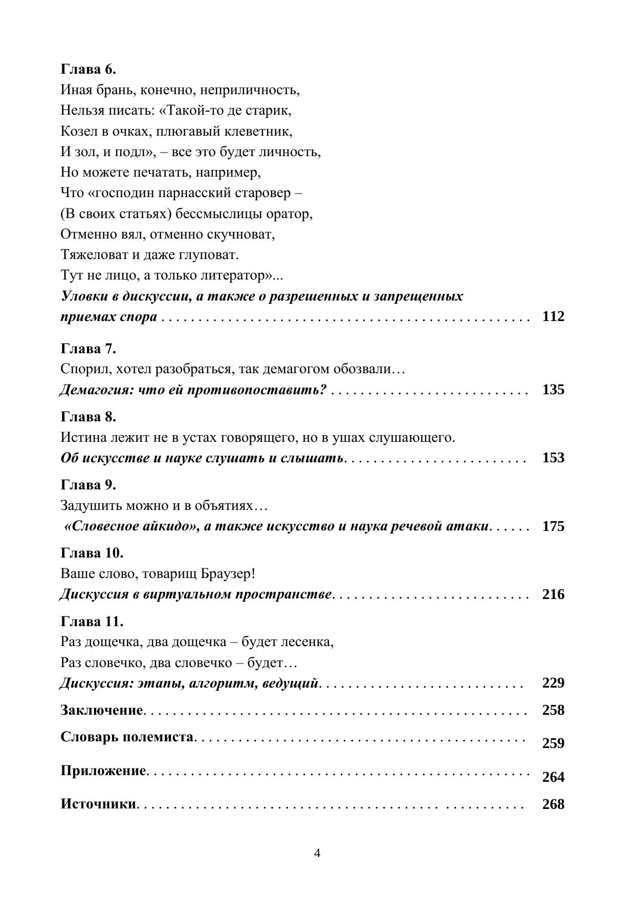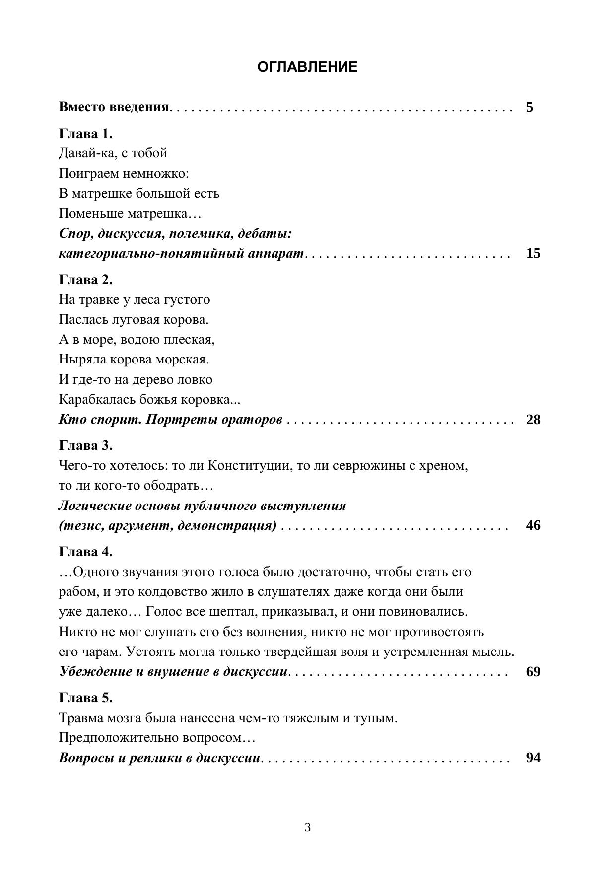 В работе даны характеристики спора и его разновидностей, прежде всего, дискуссии, ее специфических черт, направленности, форм, организации. Специально анализируется триада, необходимая в дискуссии: тезис, аргумент, демонстрация. Рассматривается типология вопросов и ответов в дискуссии, ее конструктивные и деструктивные составляющие. Особое внимание уделено различным уловкам, используемым в споре. Внимание акцентировано также на двух, на первый взгляд, взаимоисключающих стратегиях – речевой самообороне и словесной атаке. Приводятся многочисленные примеры, позволяющие овладеть словесным айкидо и провоцирующей риторикой. Предметом исследования выступает также алгоритм подготовки и проведения дискуссии, роль ведущего дискуссии, те «нештатные» ситуации, которые могут возникнуть в ходе спора, и способы их разрешения. Практико-ориентированные разделы работы содержат разнообразные творческие задания и упражнения, разработанные и применяемые автором в коммуникативных тренингах «Слово предоставлено Вам…» и «Спор? Спор…Спор!», а также взятые из литературных и интернет-источников. Руководство предназначено для бакалавров и магистров коммуникативно-ориентированных специальностей, работающих в политической сфере, для политических лидеров, политиков и всех, кто интересуется и занимается публичными политическими коммуникациями.