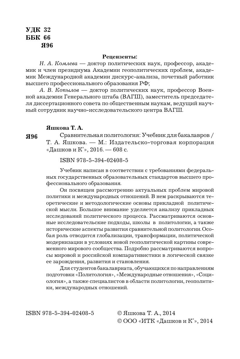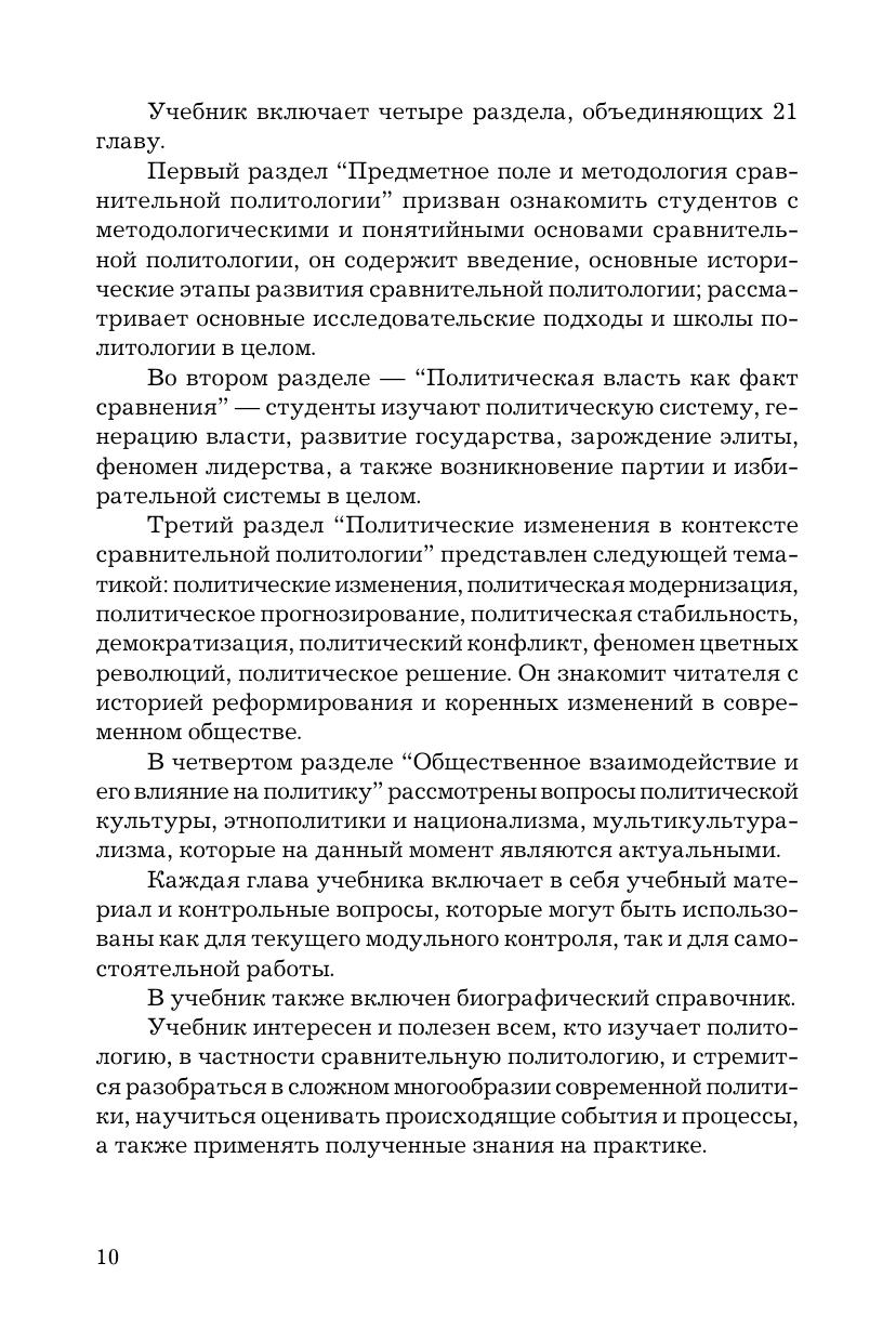 Учебник написан в соответствии с требованиями федеральных государственных образовательных стандартов высшего профессионального образования. Он посвящен рассмотрению актуальных проблем мировой политики и международных отношений. В нем раскрываются теоретические и методологические основы прикладной политической мысли. Большое внимание уделяется анализу прикладных исследований политического процесса. Рассматриваются основные исследовательские подходы, школы в политологии, а также исторические аспекты развития сравнительной политологии. Особая роль отводится глобализации, трансформации, политической модернизации в условиях новой геополитической картины современного мирового сообщества. Подробно рассматриваются вопросы мировой и российской компаративистики в логической связке ее зарождения, развития и становления. Для студентов бакалавриата, обучающихся по направлениям подготовки "Политология", "Международные отношения", "Социология", а также специалистов в области политологии, геополитики, международных отношений