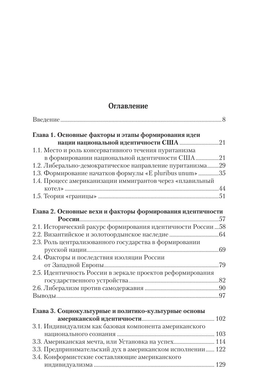 Представлен сравнительный анализ американского и российского типов национальной идентичности, их важнейших компонентов, определяющих направлений, основных вех, особенностей и исторических путей их формирования и эволюции. Главное внимание концентрируется на ключевых аспектах, наиболее характерных для двух стран: национальноисторических, социально-культурных, политико-культурных, социальнопсихологических, идейно-политических составляющих, установках, ориентациях. Рассмотрены наиболее значимые социально-экономические, географические и иные факторы, оказавшие влияние на своеобразие моделей национальной идентичности России и США. Поднята тема возможностей использования в нашей стране американского опыта и выбора Россией пути политического развития между Востоком и Западом. Для ученых и специалистов в области политологии, социологии, истории, культурологии и других социально-гуманитарных наук. Может использоваться при подготовке магистрантов и аспирантов. Представляет интерес для представителей интеллектуальных читательских кругов.