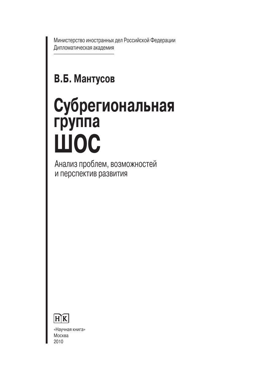 Субрегиональная группа ШОС. Анализ проблем, возможностей и перспектив развития. Монография