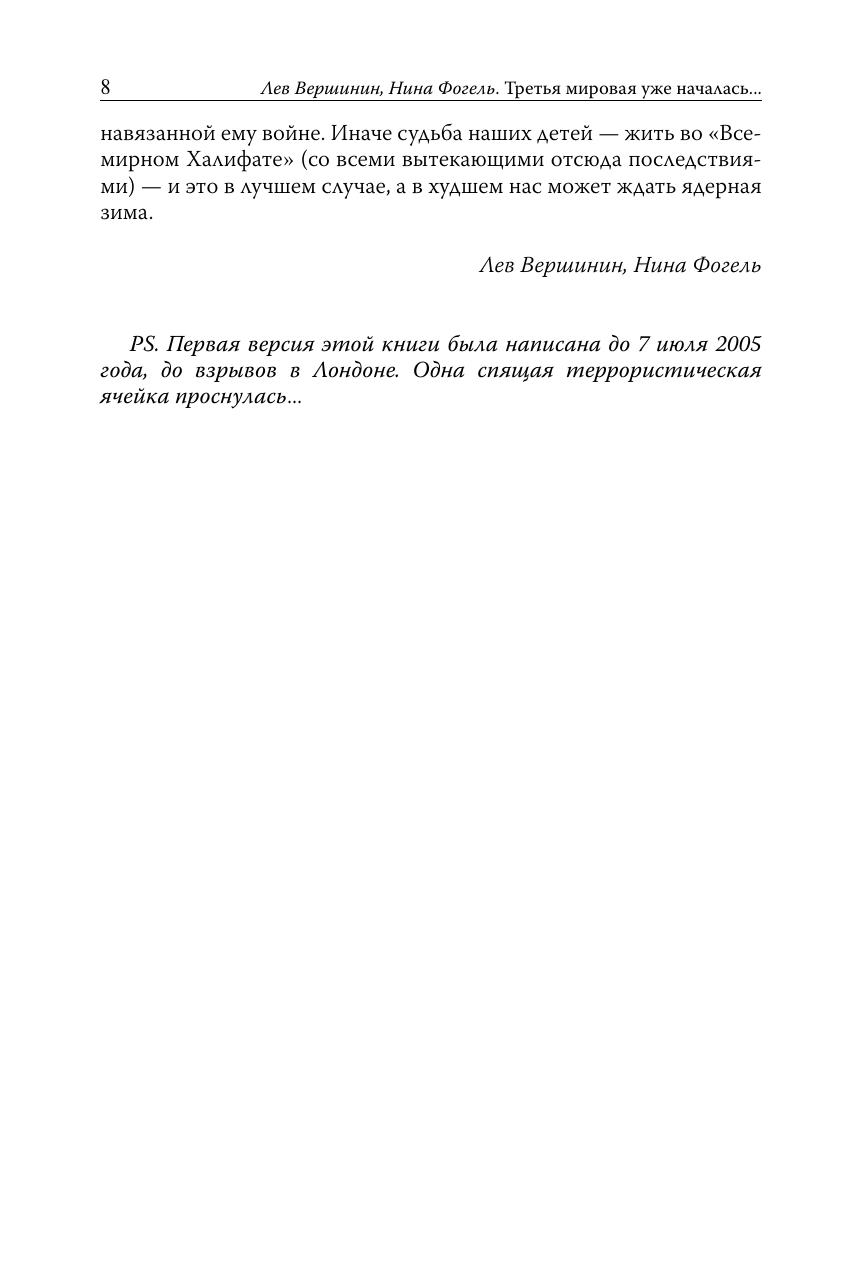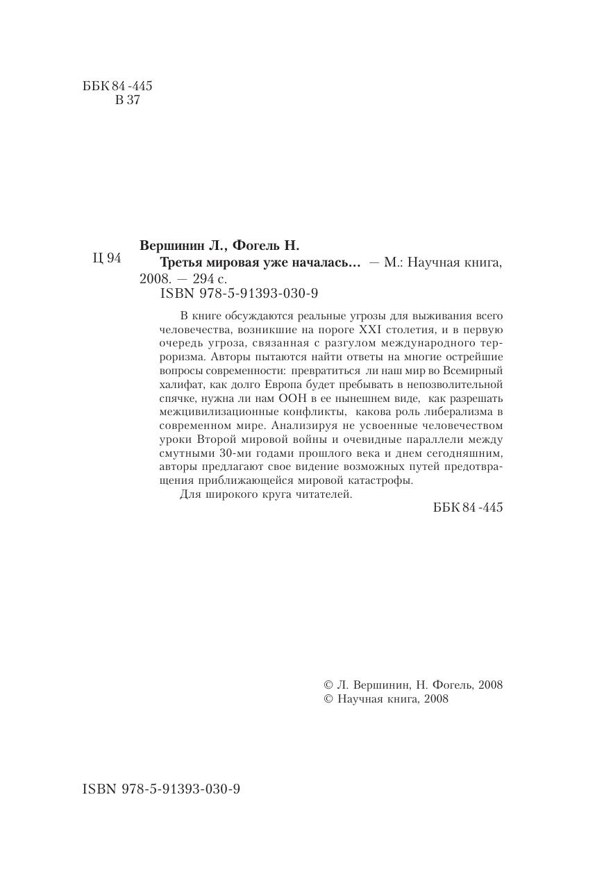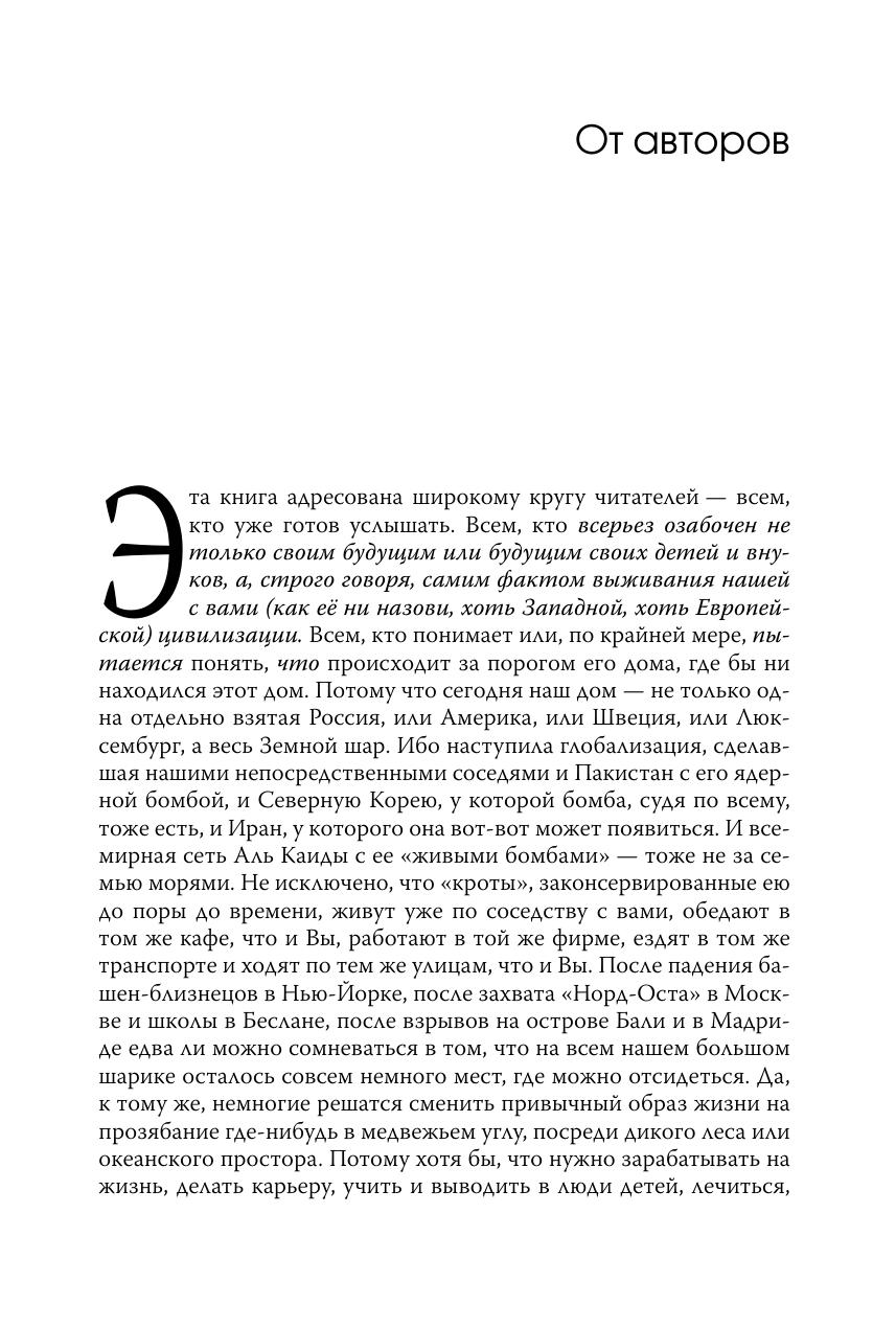 В книге обсуждаются реальные угрозы для выживания всего человечества, возникшие на пороге ХХI столетия, и в первую очередь угроза, связанная с разгулом международного терроризма. Авторы пытаются найти ответы на многие острейшие вопросы современности: превратиться ли наш мир во Всемирный халифат, как долго Европа будет пребывать в непозволительной спячке, нужна ли нам ООН в ее нынешнем виде, как разрешать межцивилизационные конфликты, какова роль либерализма в современном мире. Анализируя не усвоенные человечеством уроки Второй мировой войны и очевидные параллели между смутными 30-ми годами прошлого века и днем сегодняшним, авторы предлагают свое видение возможных путей предотвращения приближающейся мировой катастрофы. Для широкого круга читателей.