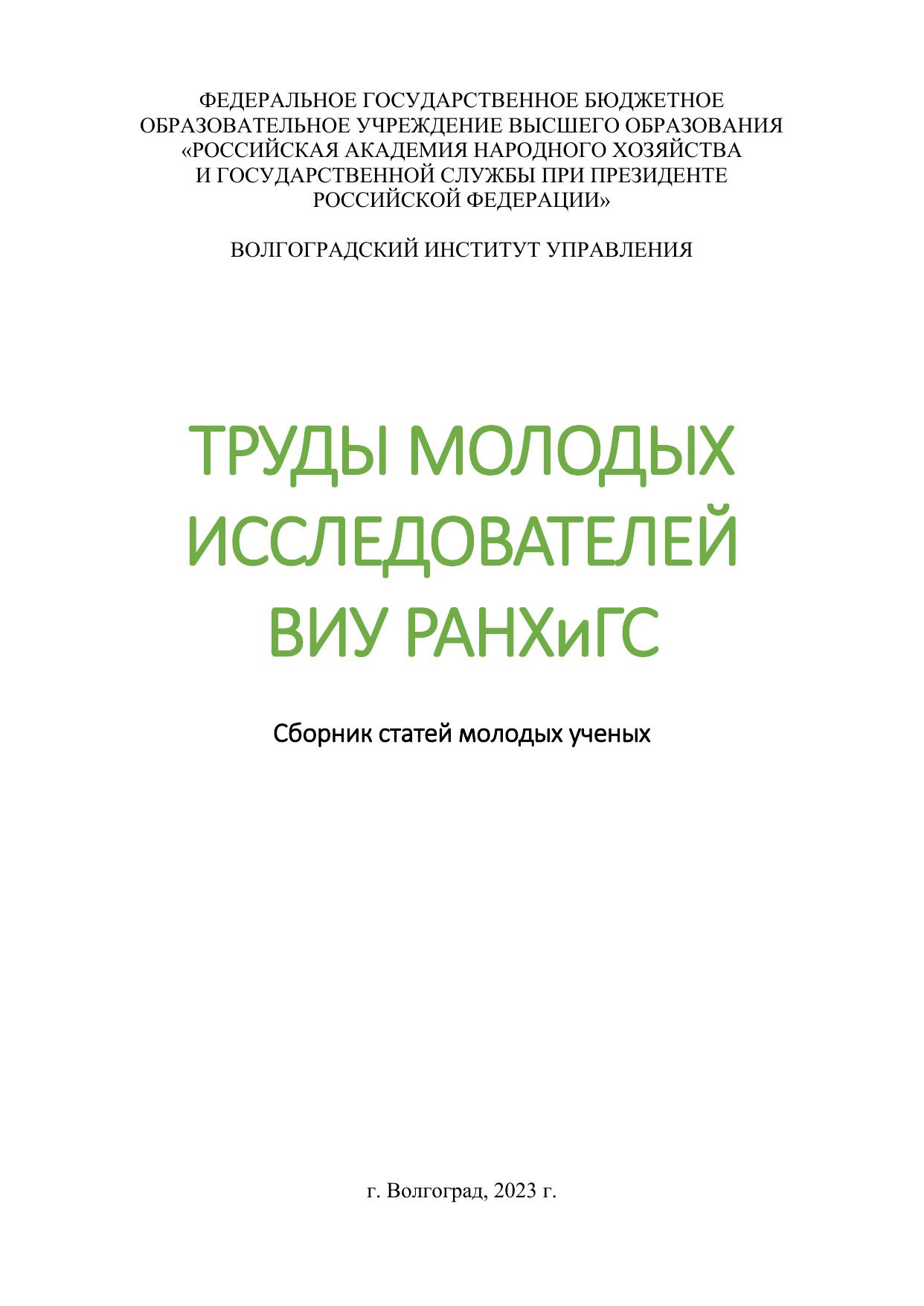 Труды молодых исследователей ВИУ РАНХиГС: сборник статей молодых ученых