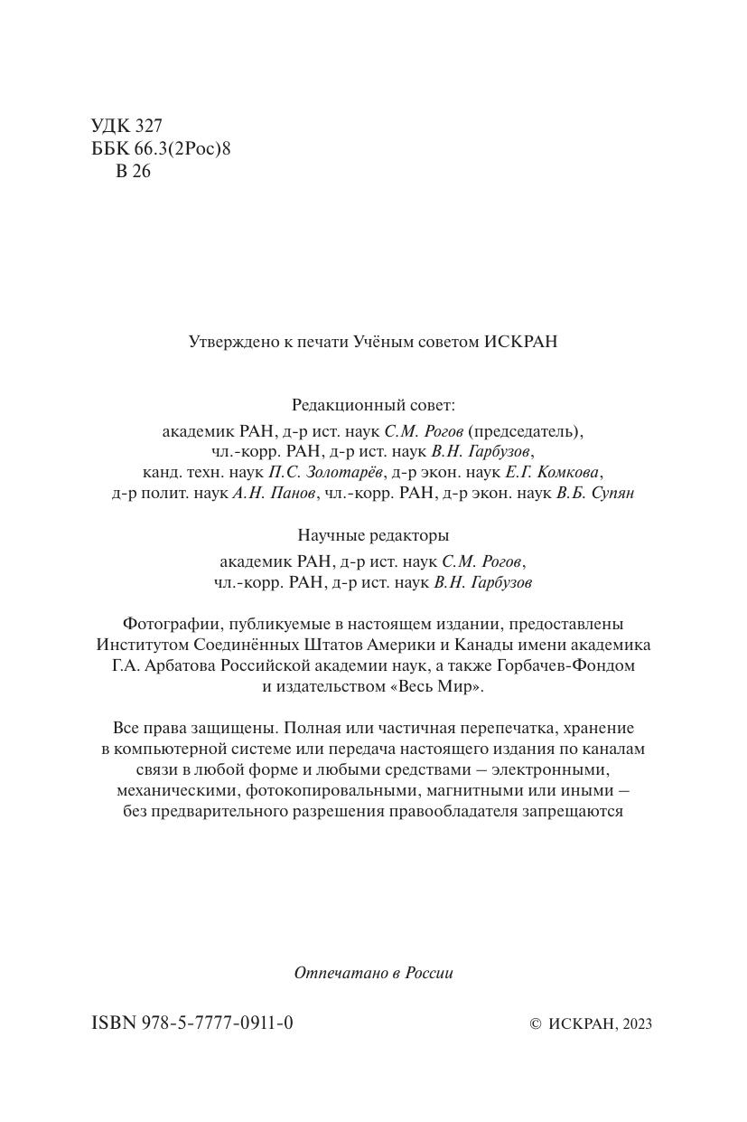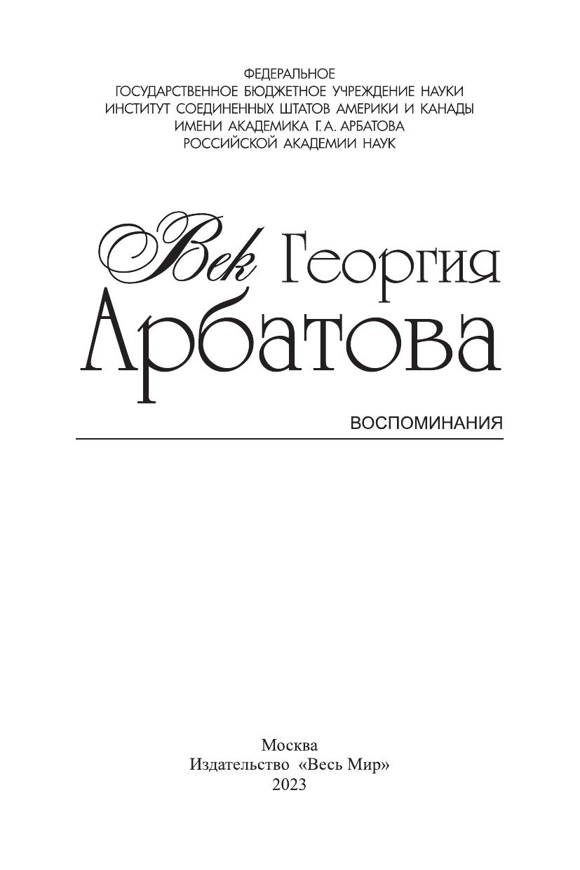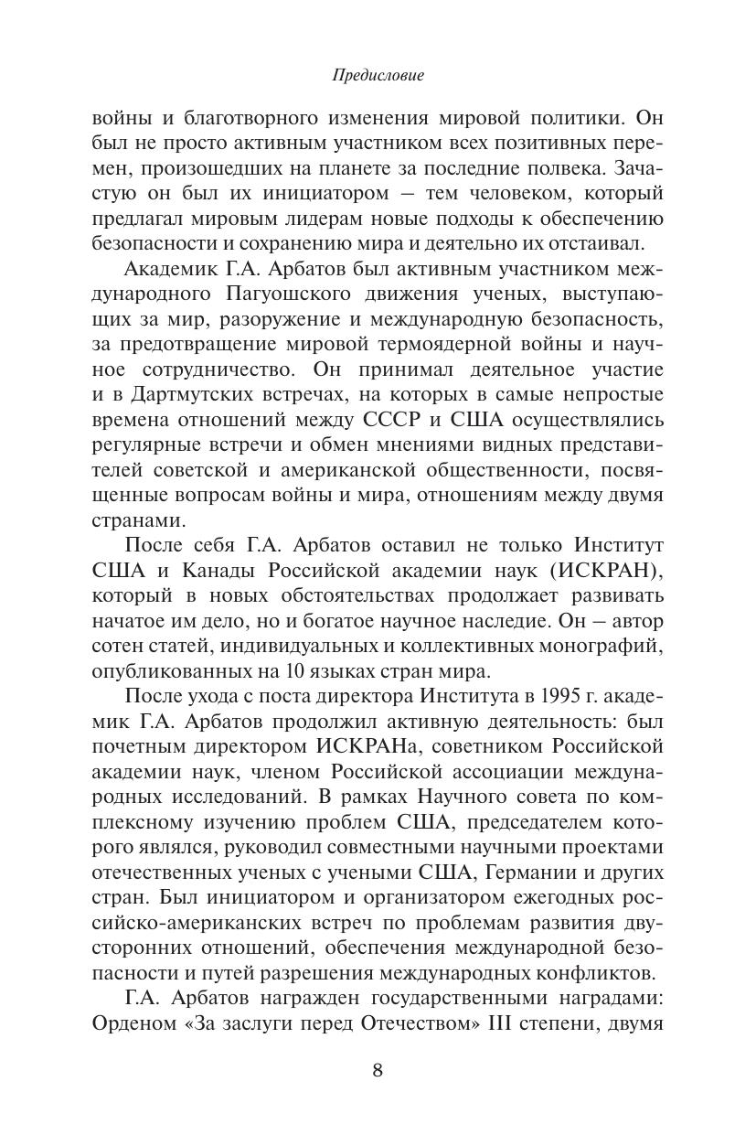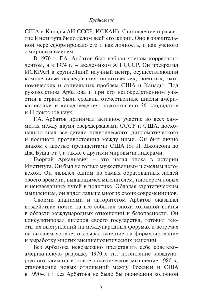 Книга подготовлена к 100-летнему юбилею академика Георгия Аркадьевича Арбатова – известного ученого-американиста и политического деятеля, выдающегося российского эксперта в области международных отношений. Без Г.А. Арбатова невозможно представить себе советско- американскую разрядку 1970-х годов, потепление международного климата и новое политическое мышление 1980-х, становление новых отношений между Россией и США в 1990-е годы. Без него не было бы окончания холодной войны и благотворного изменения мировой политики. В книге представлены воспоминания самого Г.А. Арбатова и его современников. Издание содержит и фотографии – наглядные свидетельства событий, непосредственным участником которых он был.