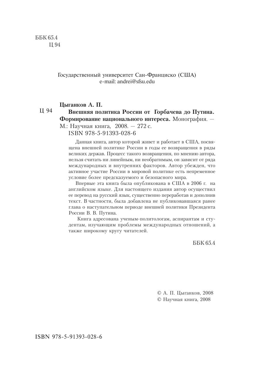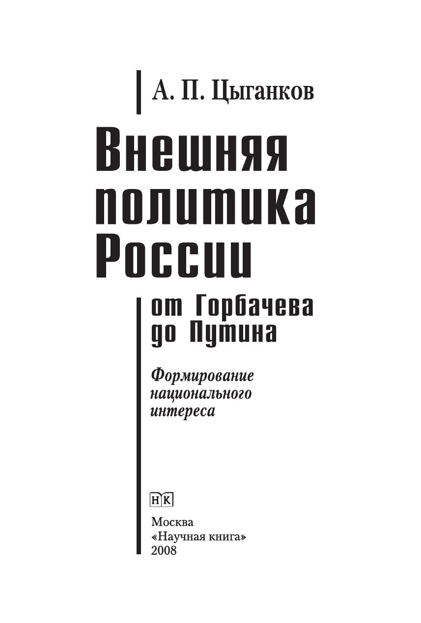 Внешняя политика России от Горбачева до Путина. Формирование национального интереса. Монография